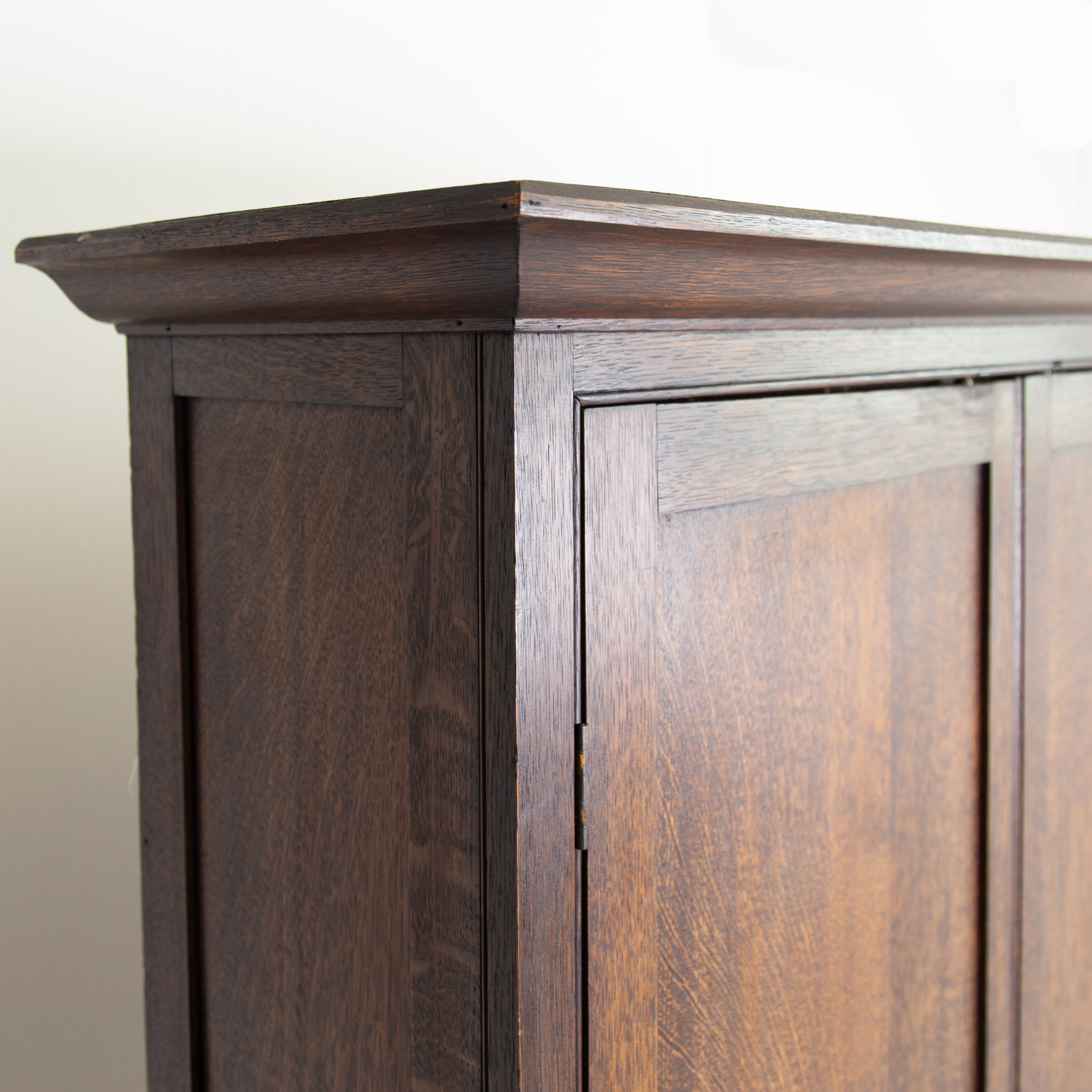 It sits attractively and looks the part with its panelled doors, panelled sides and extra space for one's foot wear at the base - which is something we have not seen before and leaning towards Arts & Crafts in design and build.