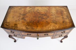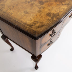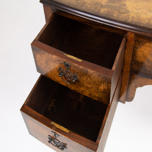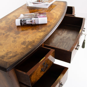 Attractive 1930s Period Bow Front Burr Walnut 5 Drawer Desk
