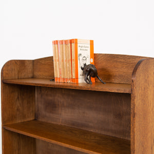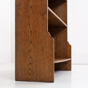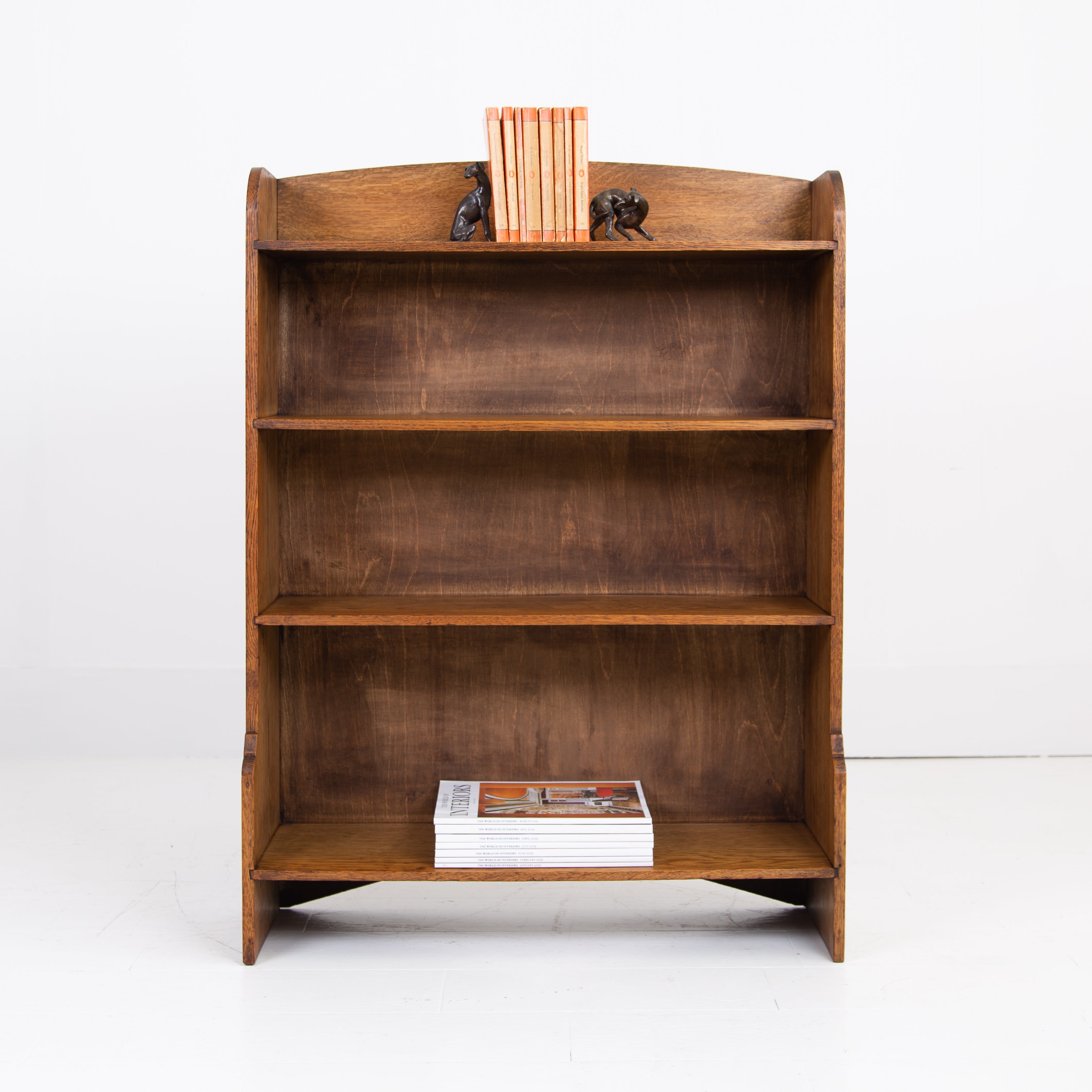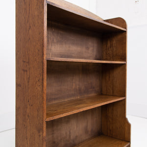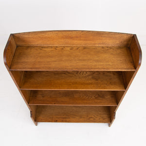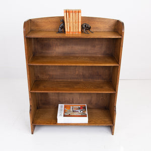 A well proportioned and attractive English oak 4 shelved bookcase C1930s. It’s of such an accommodating size, well designed with its arched top and shapely base to the sides.