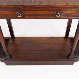 A great looking hall piece of a lesser seen design, English oak C1880, no makers mark however super quality.