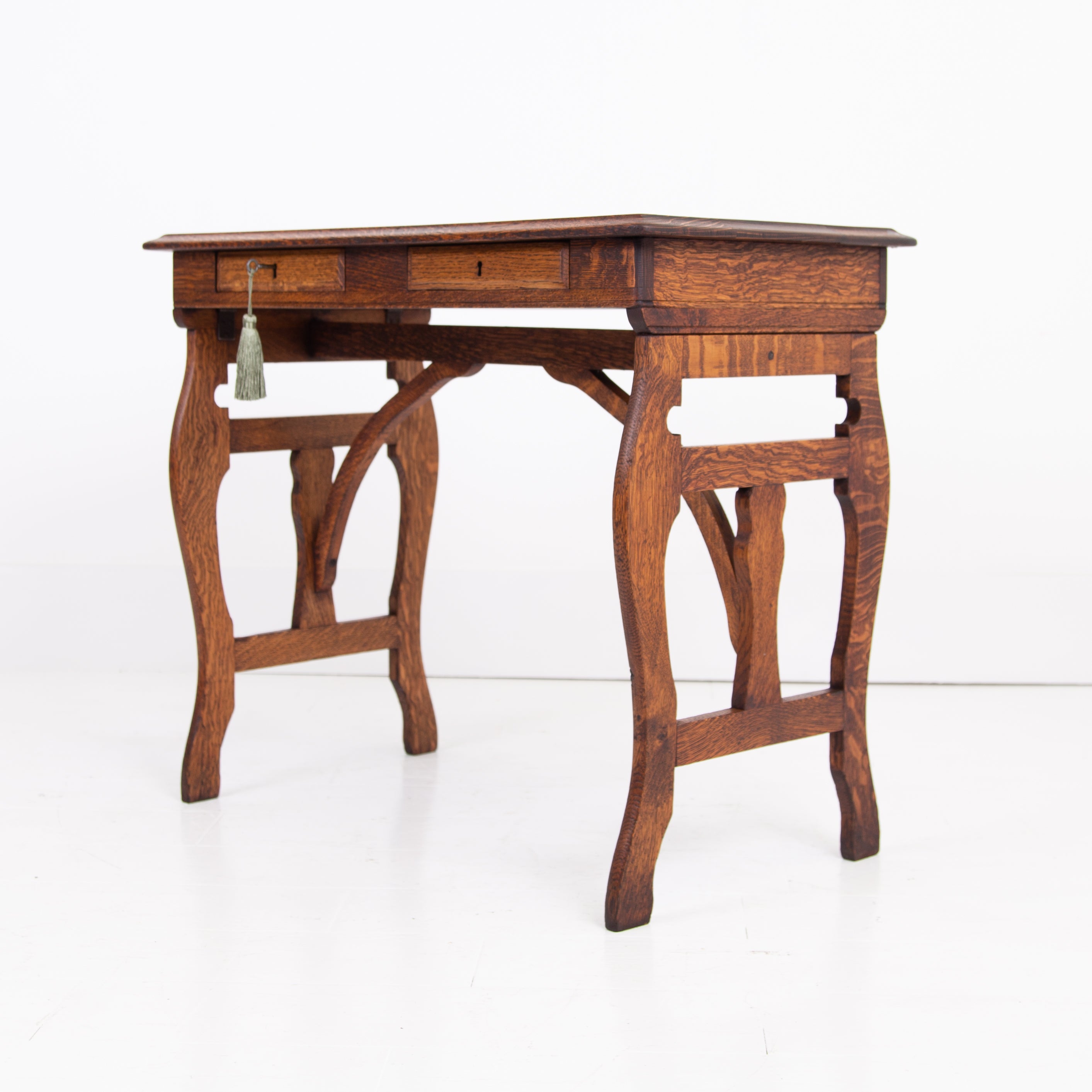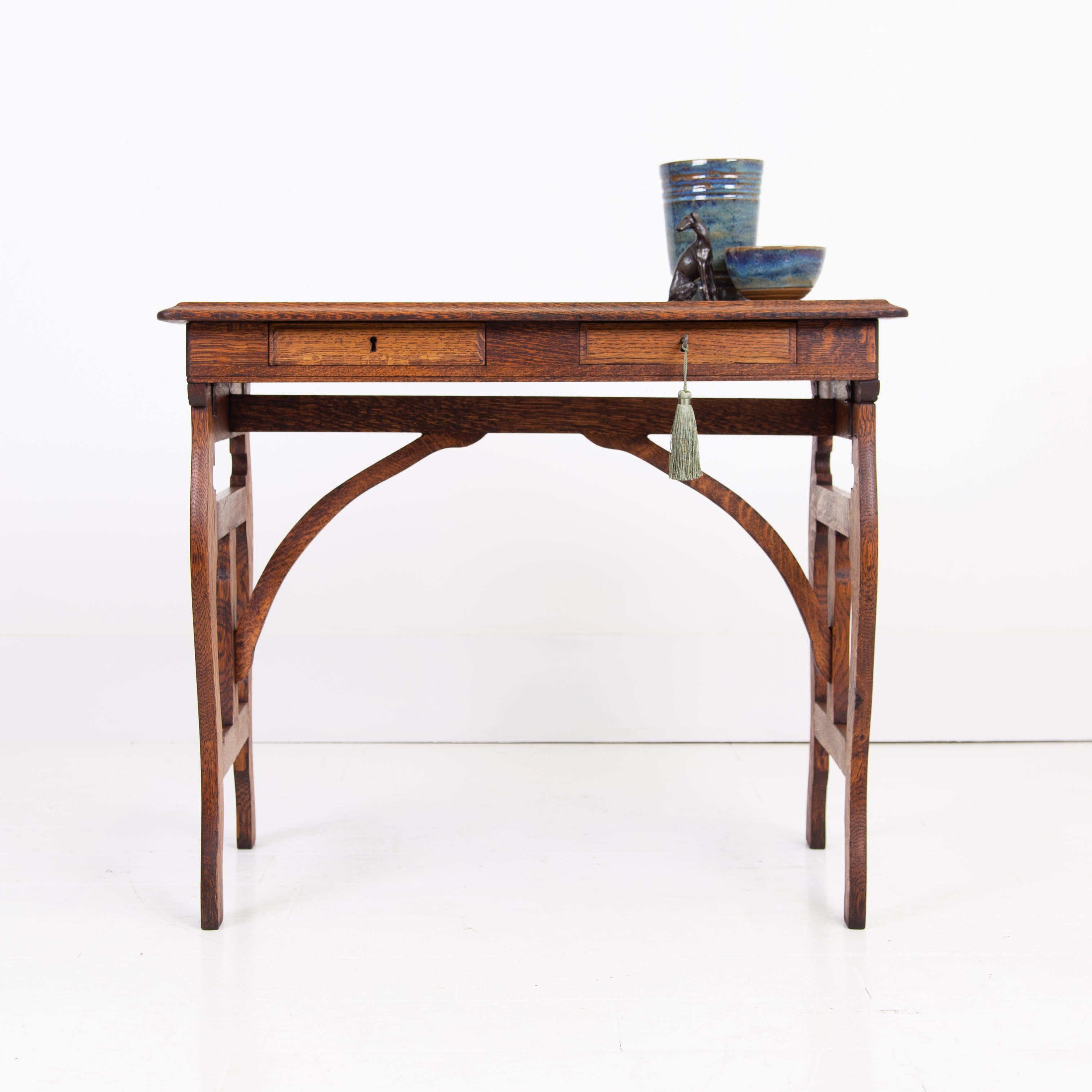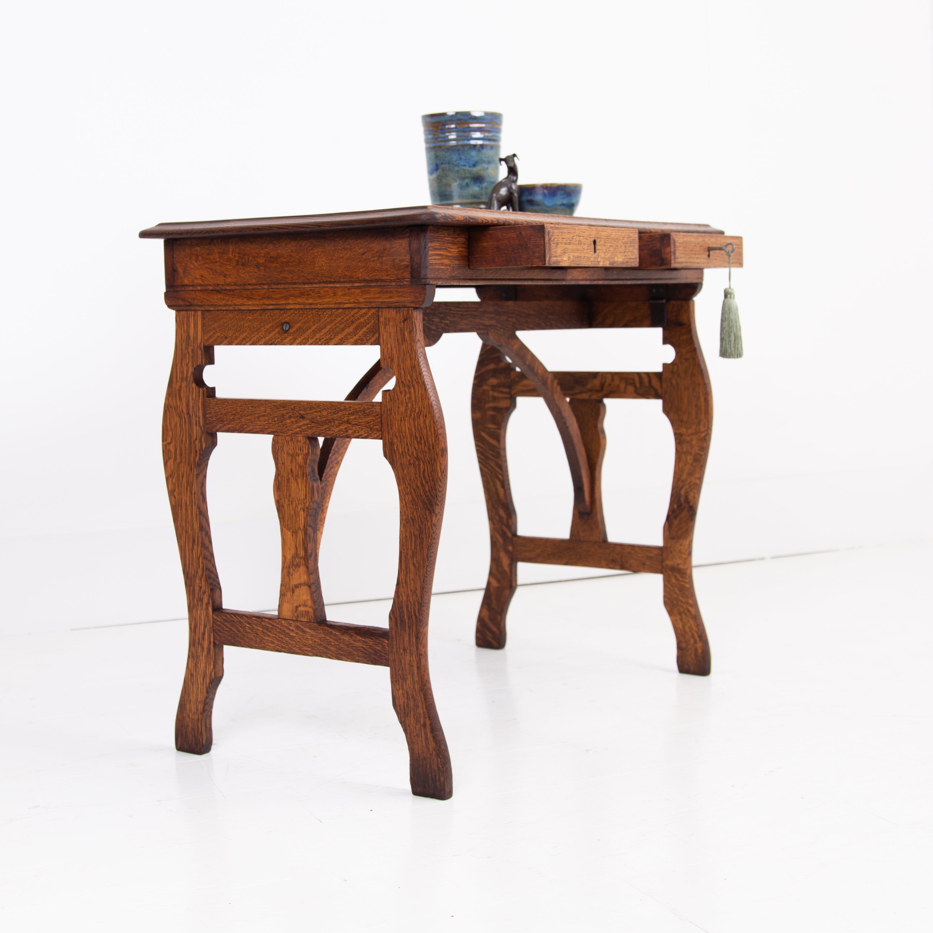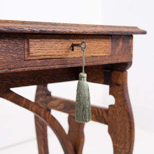 A lovely and highly attractive oak side table with two slender little drawers which come with working locks and key for one's secrets…