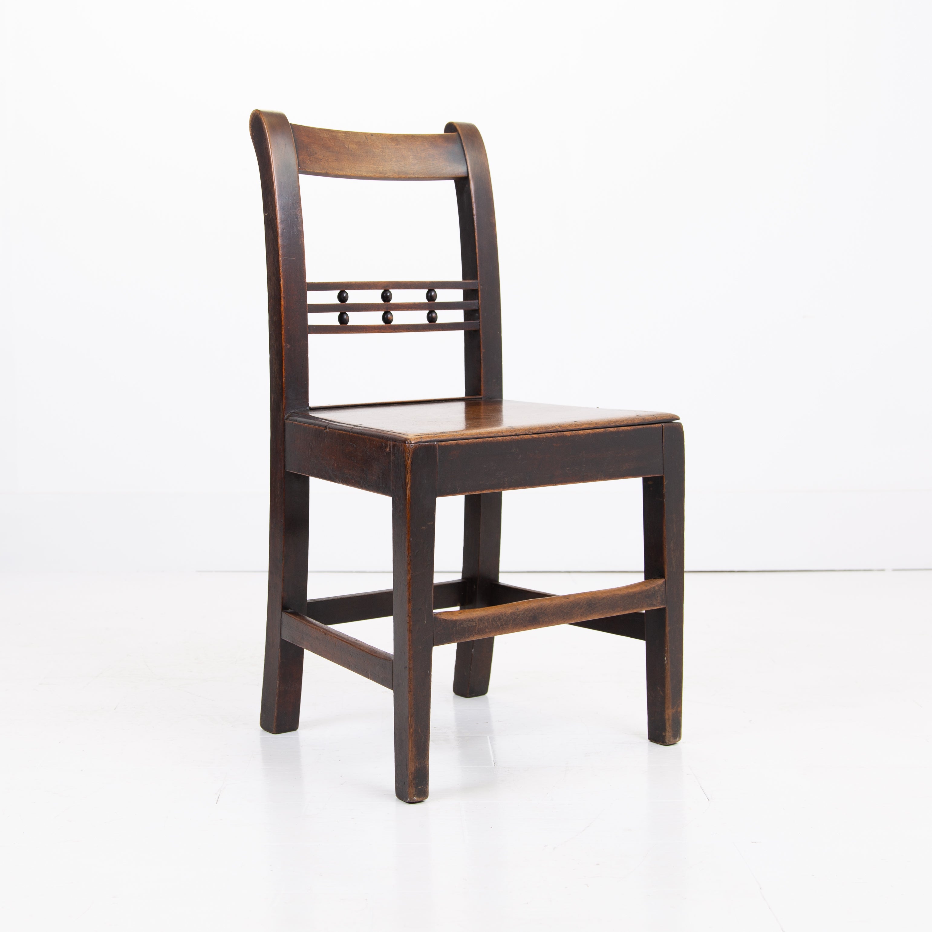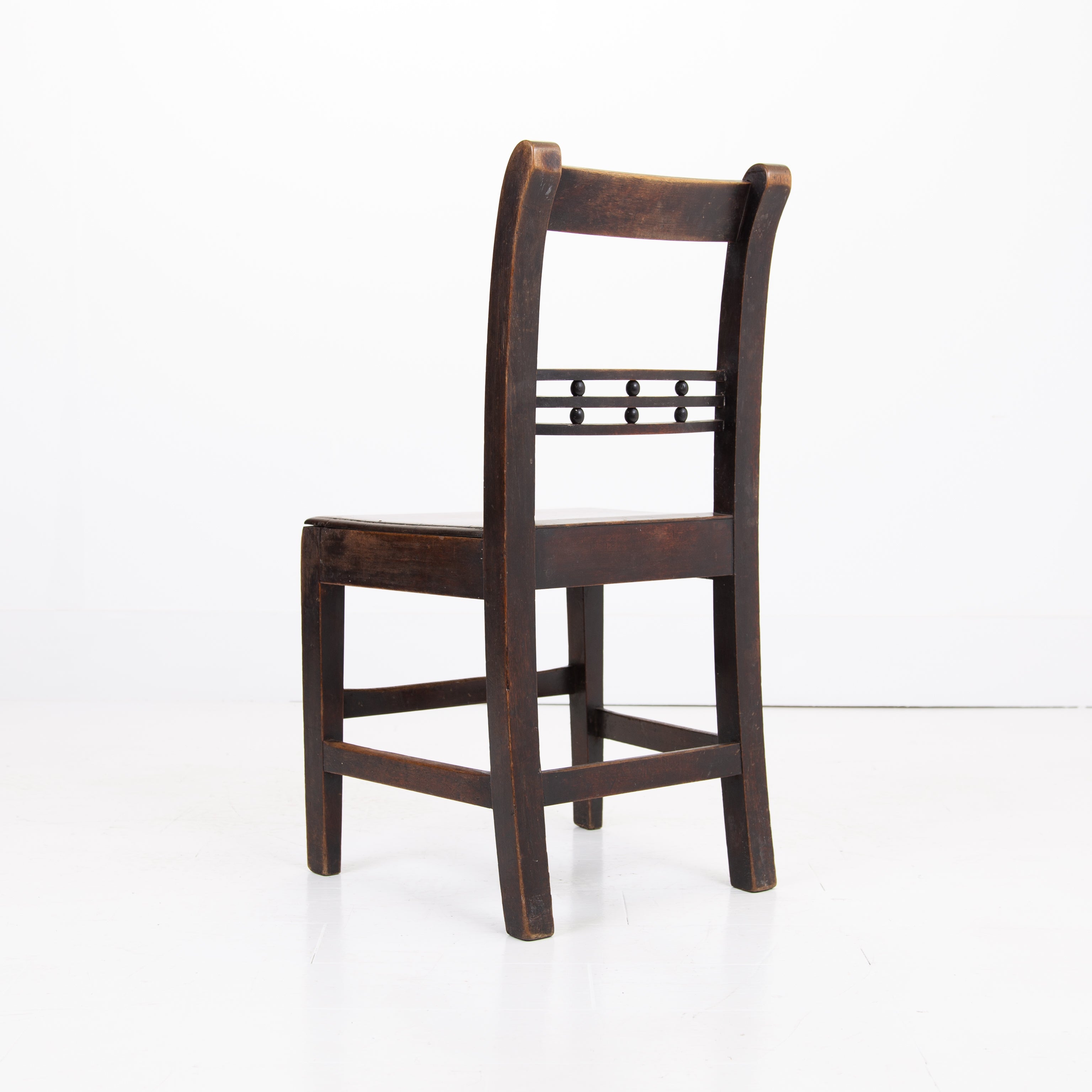 We have a rather lovely matched set of 6 early 19th century kitchen dining chairs found in Yorkshire in an untouched condition having great wear and patina in the right places. The stance is spot on for the age - simple, solid, well set, heavy and unfussy, with a good colour to the aged mahogany and genuine historic wear. If you are seeking a set of 6 C1810 which have some lovely wear in the right places then these are worthy of consideration.