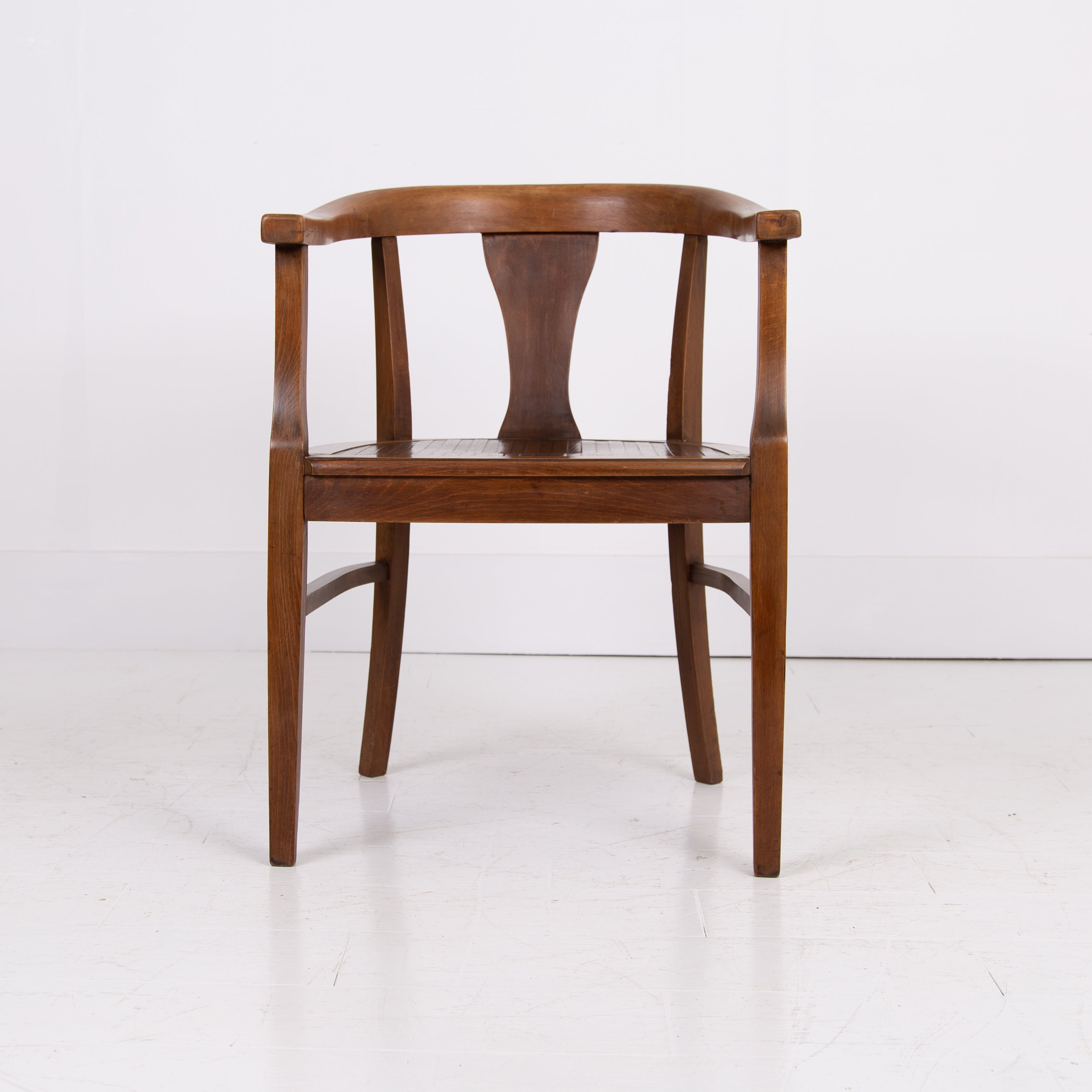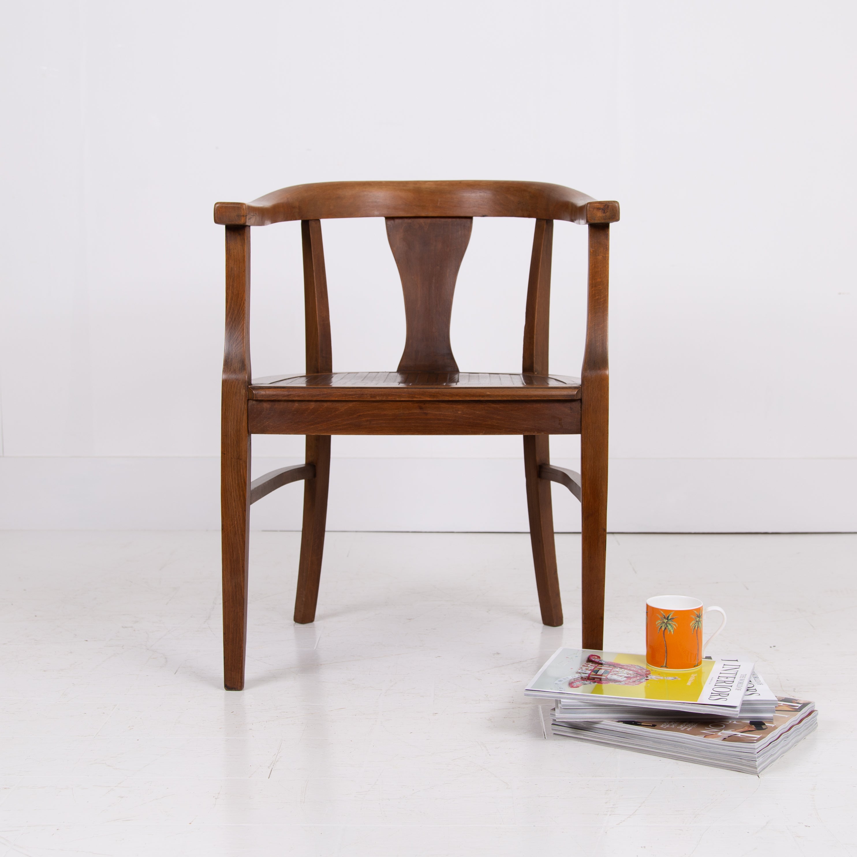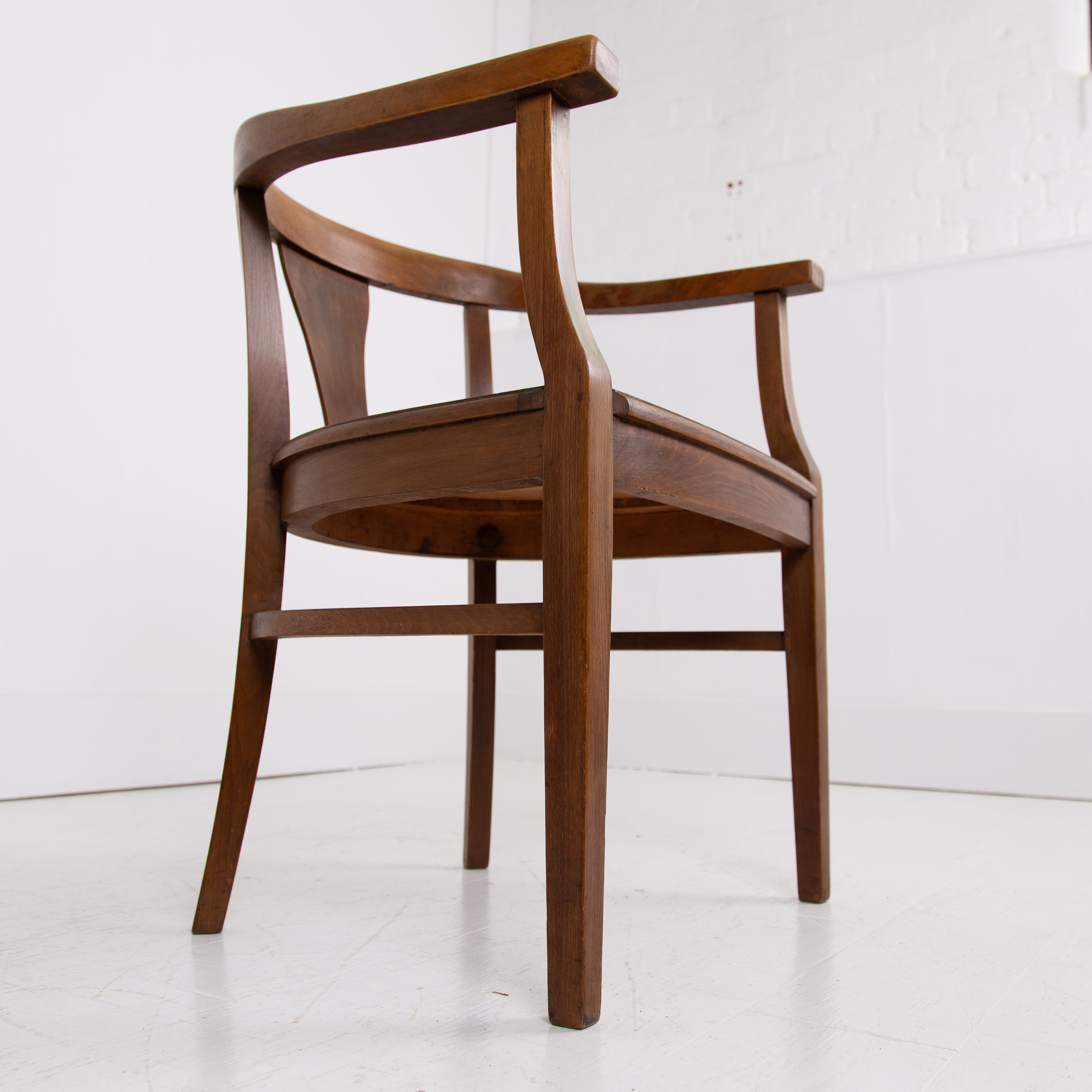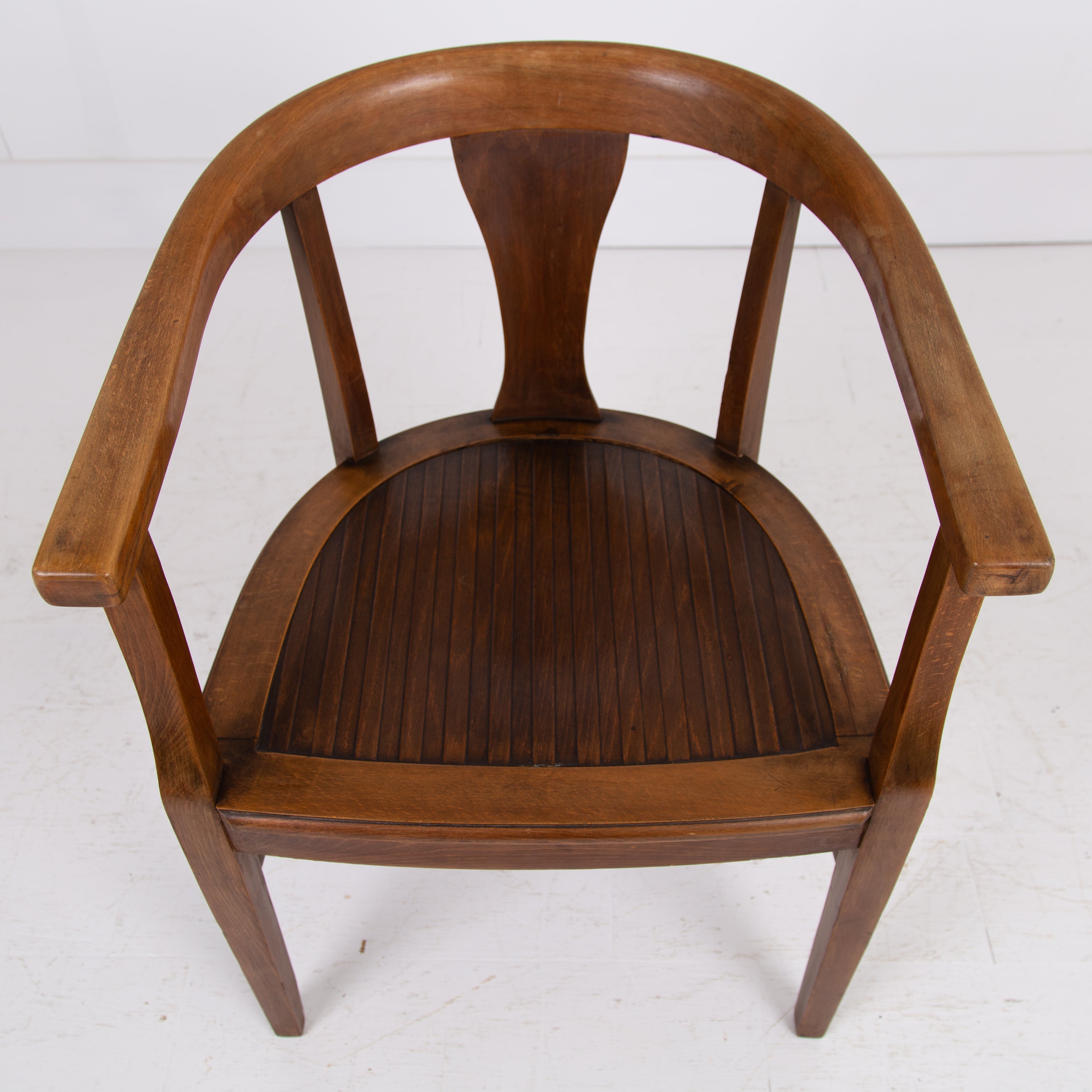 Sitting in a lovely time-worn condition and dated 1935 underneath with a ribbed shaped seat, the chair has an effortless design, very much of the era and is faintly industrial in style with some good width, berth and depth.