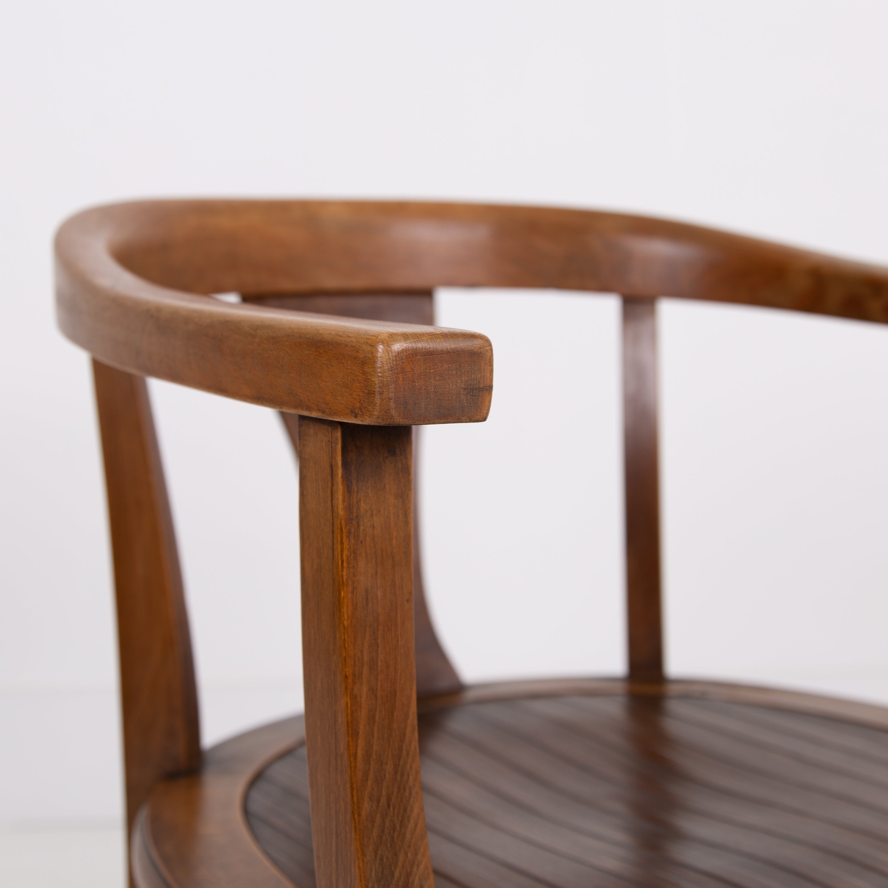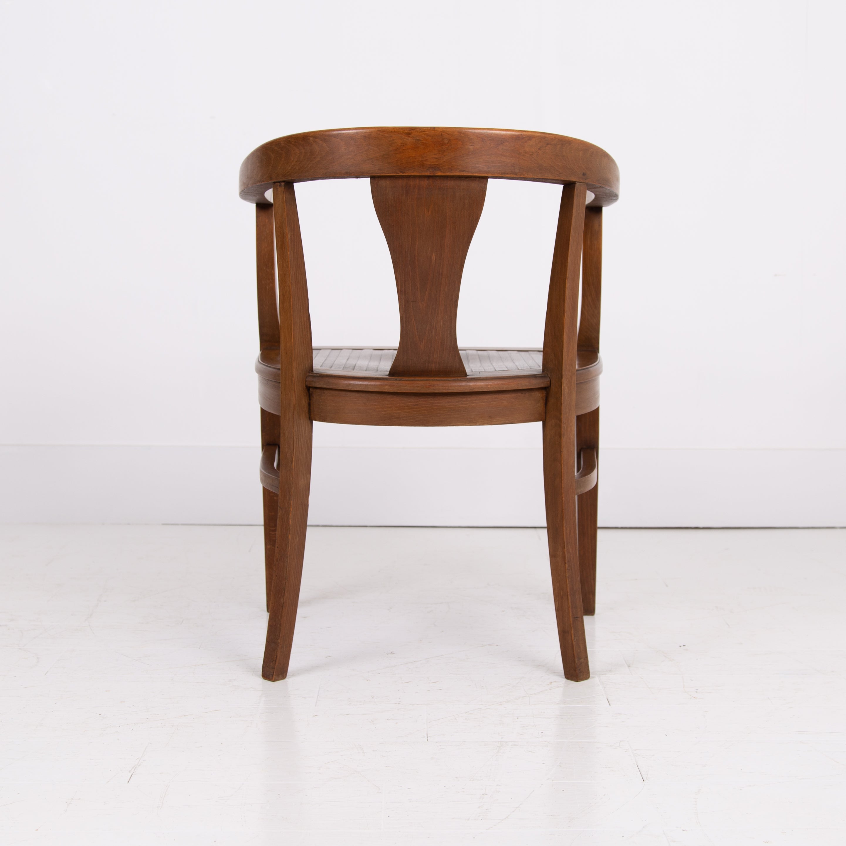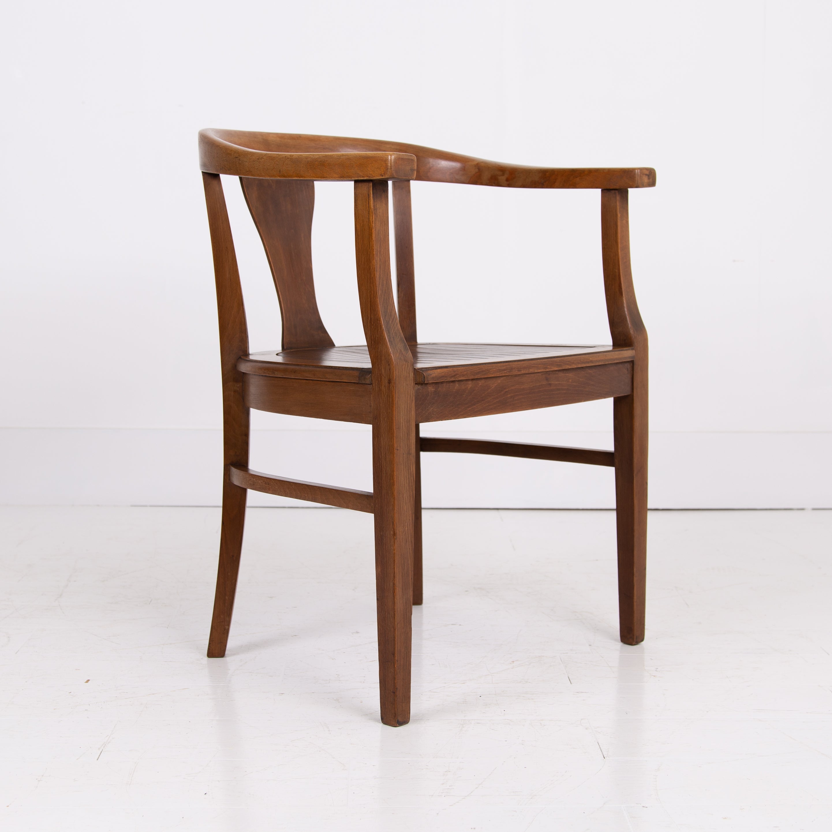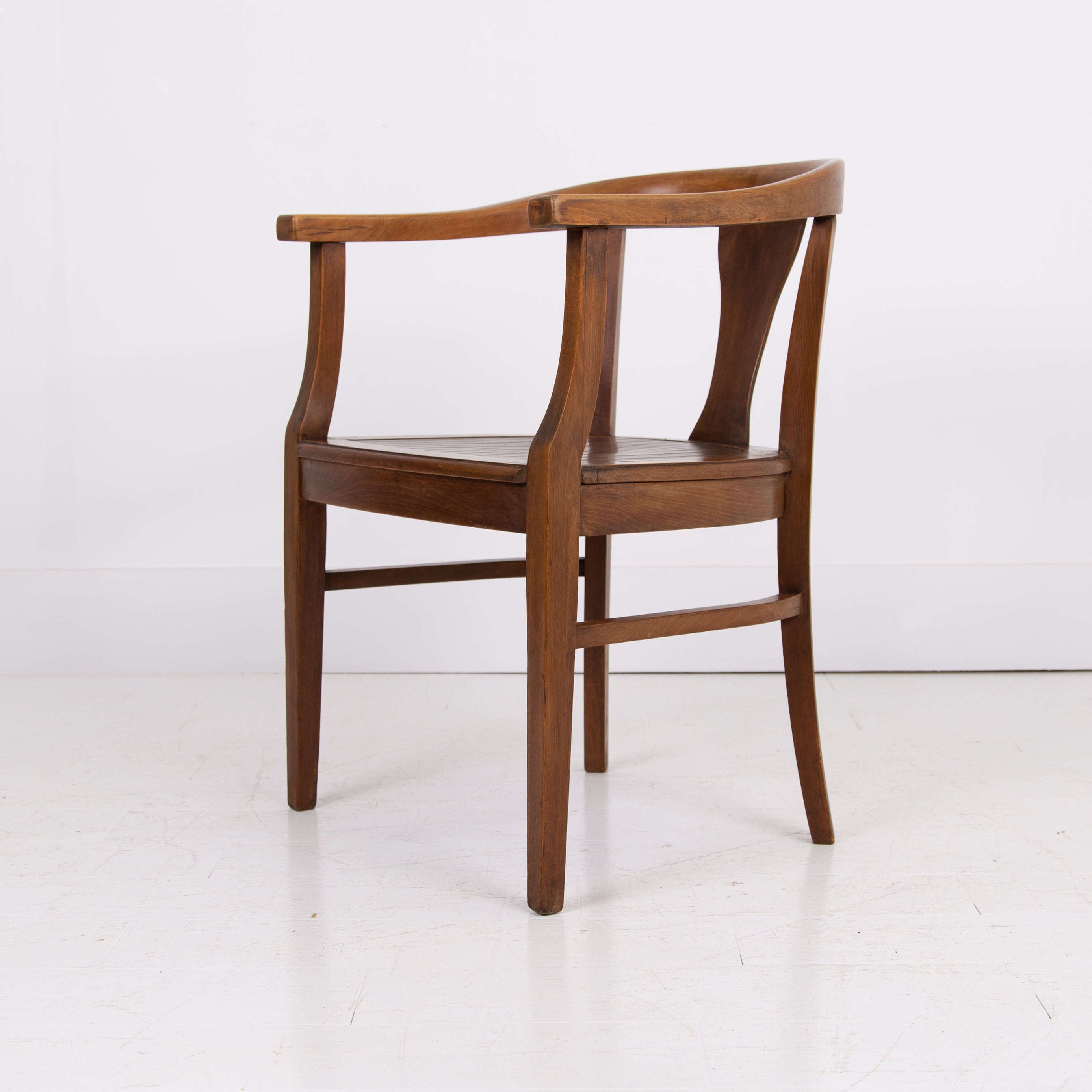 Sitting in a lovely time-worn condition and dated 1935 underneath with a ribbed shaped seat, the chair has an effortless design, very much of the era and is faintly industrial in style with some good width, berth and depth.