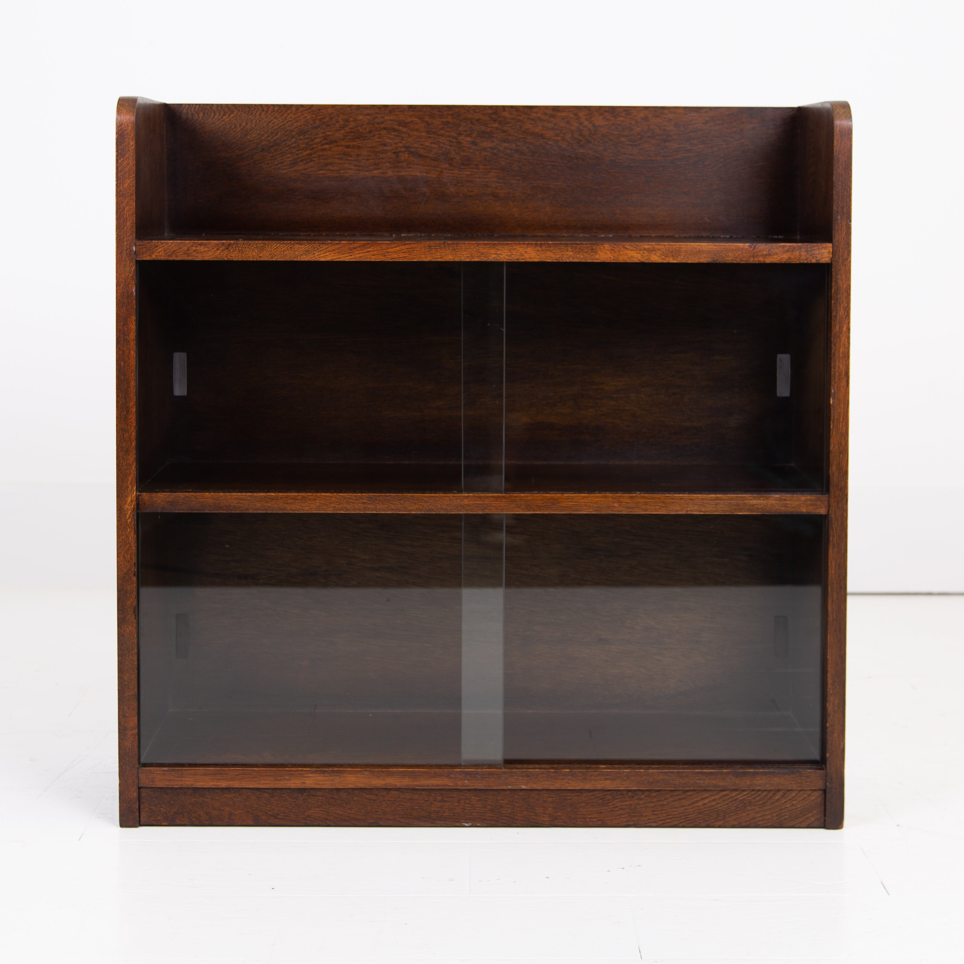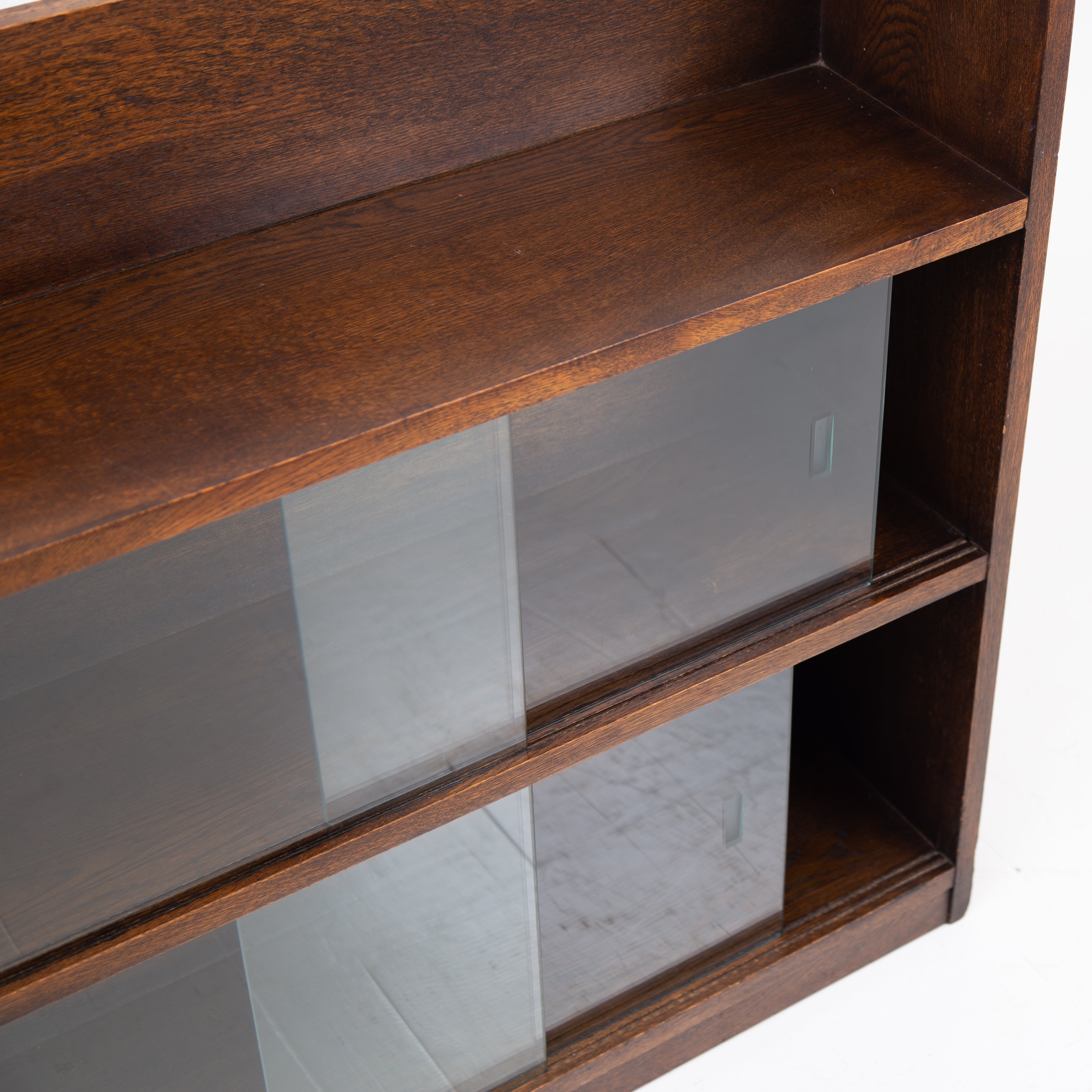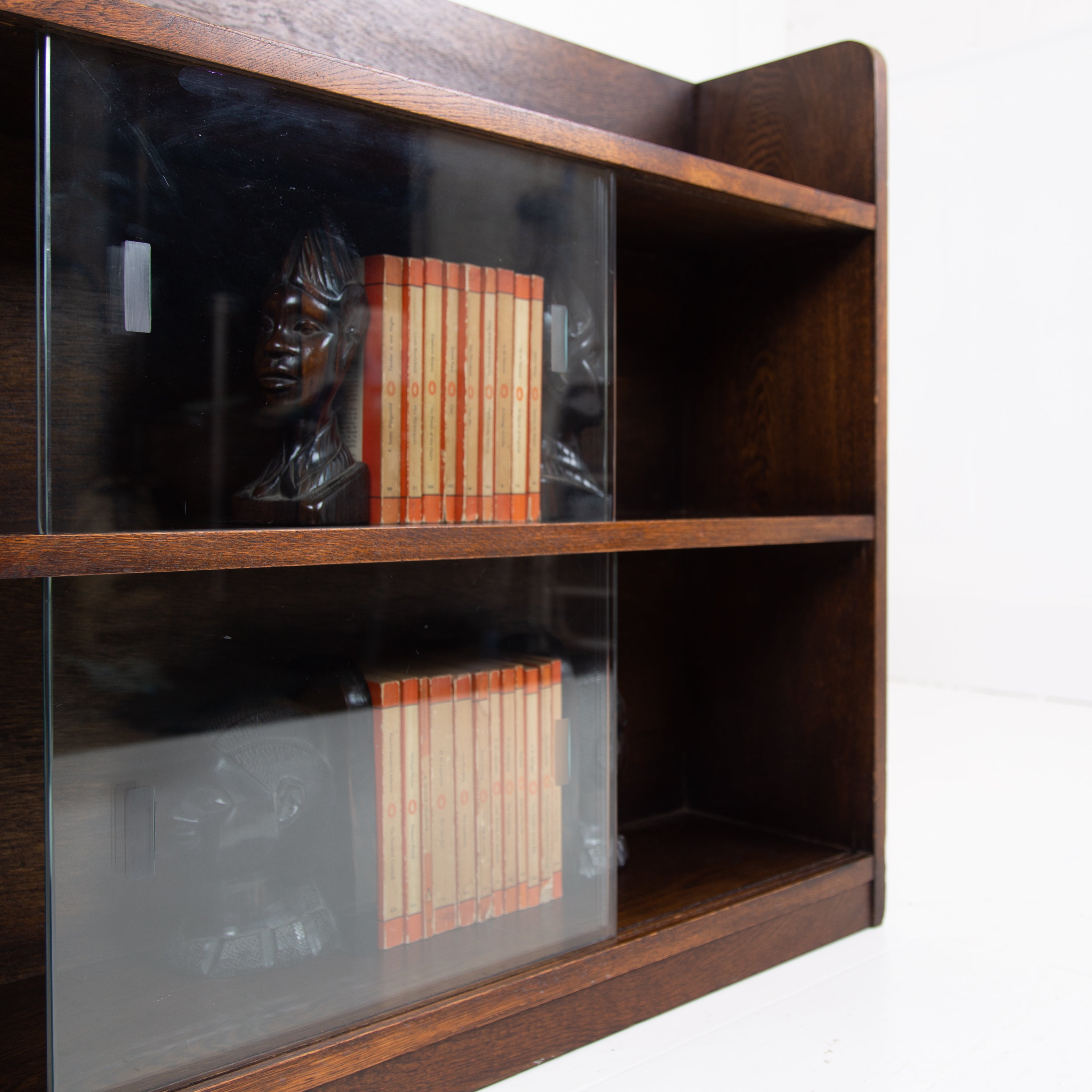 A British Oak Bookcase With Sliding Glass Doors C1940s