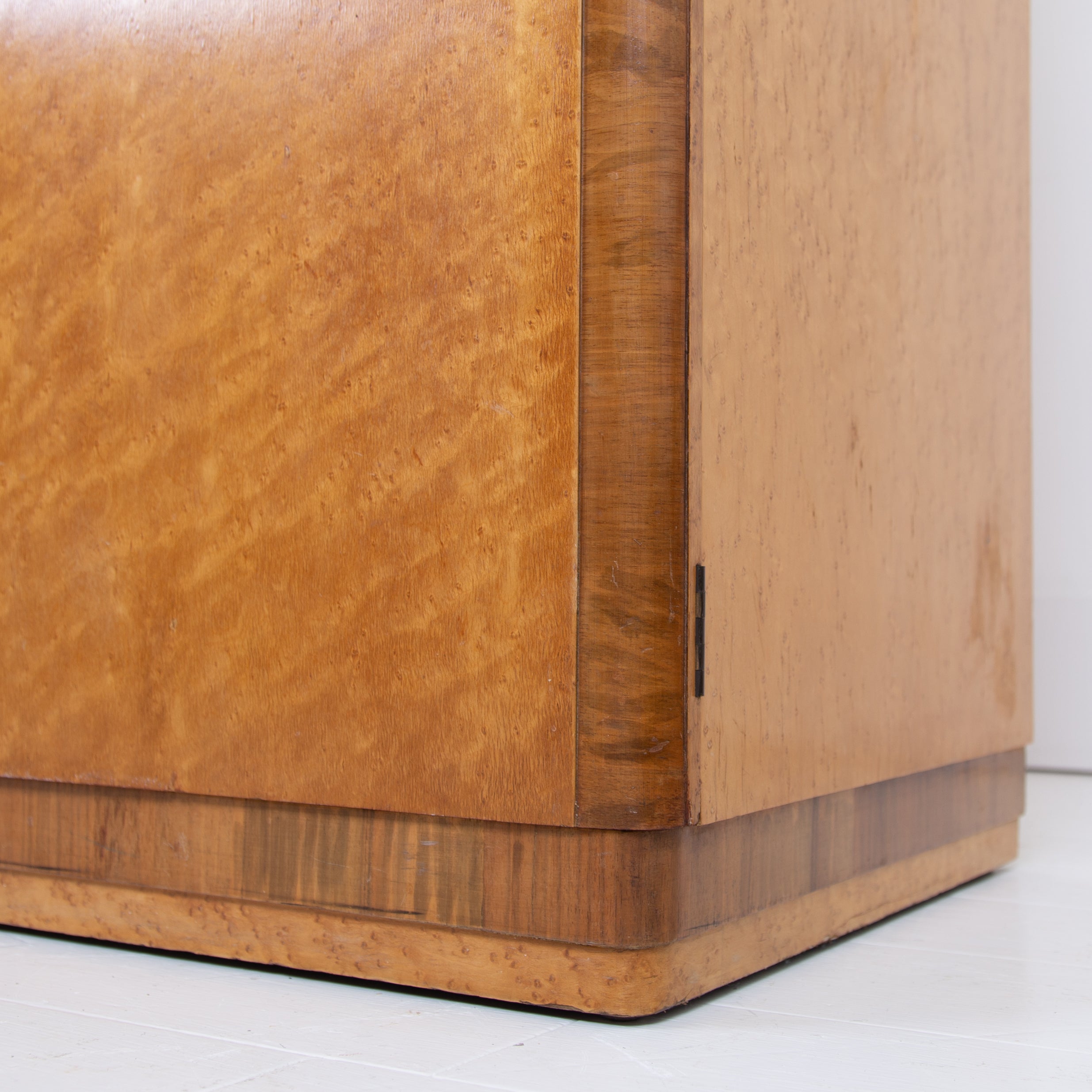 Super quality and classic Art Deco design, we have a birds eye maple cabinet/cupboard in lovely original condition with the bonus of a working lock and key. It is of sensible proportions and would fit into so many spaces in a period home or modern apartment.