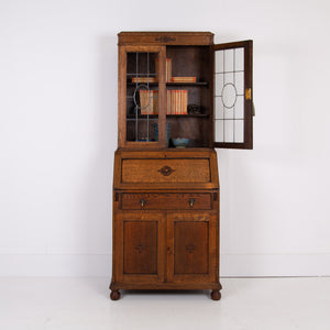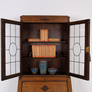 A Smaller Oak Glazed Bookcase Cabinet Bureau C1920s