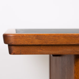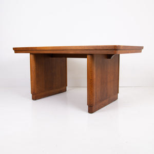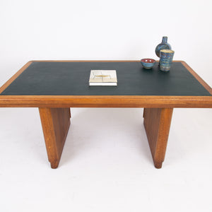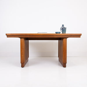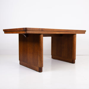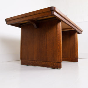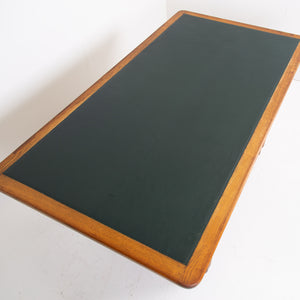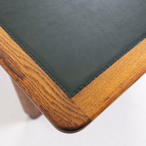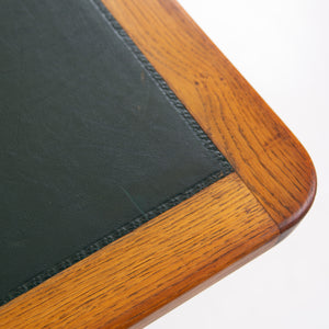 Liking this one an awful lot - the top with its green leather tool edged surface which sits inside a decent well shaped oak surround, those highly distinctive oak supports and the little inverted base sitting under the supports make it so good looking and practical with sizable space for working.