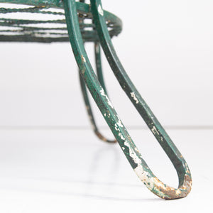 A super designed and pleasingly aged French patio garden table sitting in green paint with wear to all areas, but perfectly usable and very attractive to the eye.