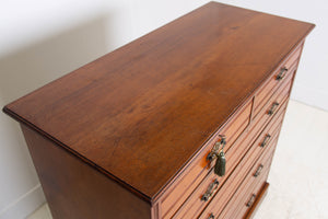 This one possesses a great stance with its deep plinth, original brass handles and easy on the eye design and craftsmanship. As mentioned it sits in good historic order with the usual day to day marks but nothing new or fresh. The oak lined drawers are clean, tidy and running as they should. We have ensured that the chest is ready to place.