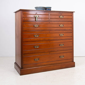 A rather good looking large chest of drawers from a large period property in Nottinghamshire and sitting in good original condition with a working lock and key for a change... We have a simple drawer set up of 2 half to the top and 4 graduated drawers below.