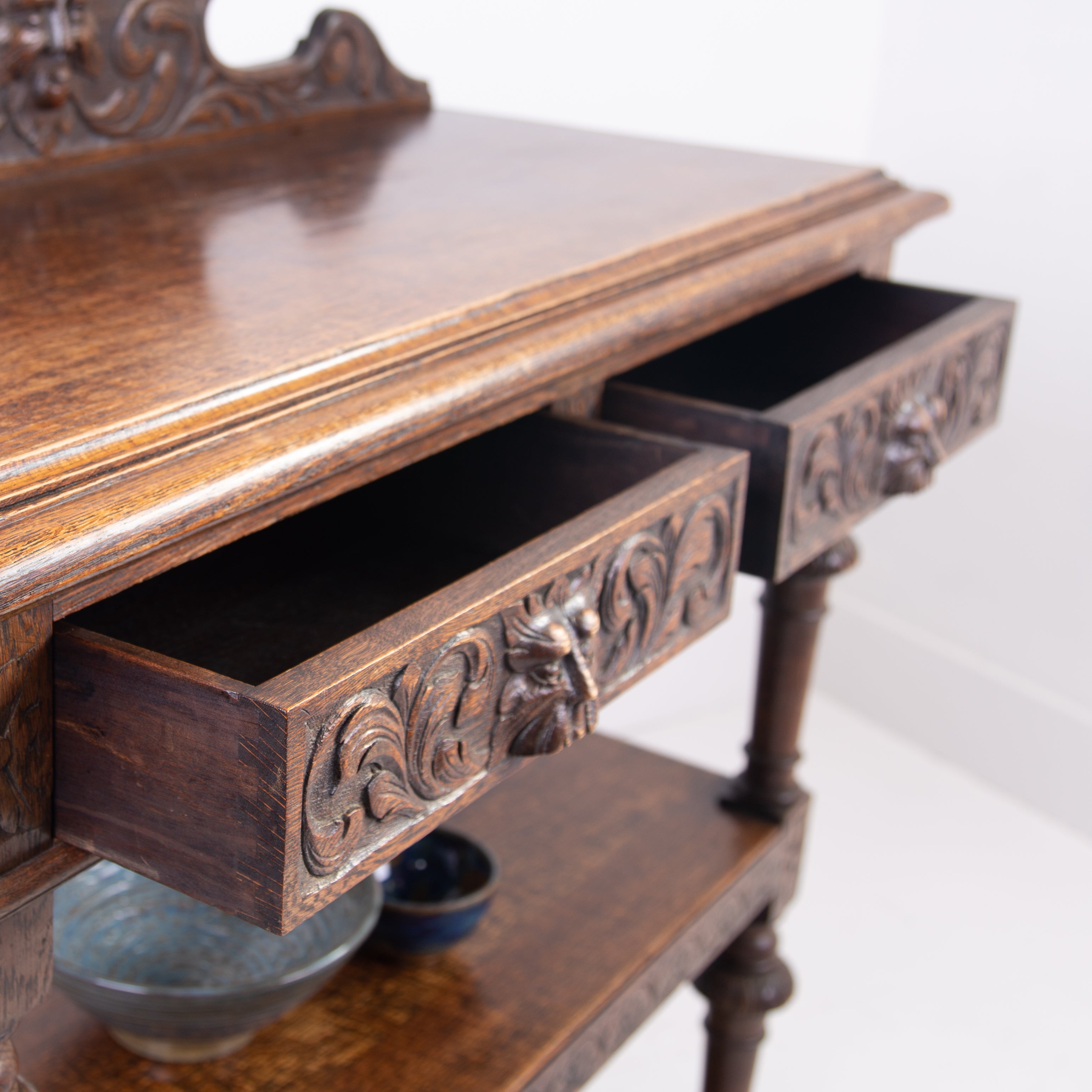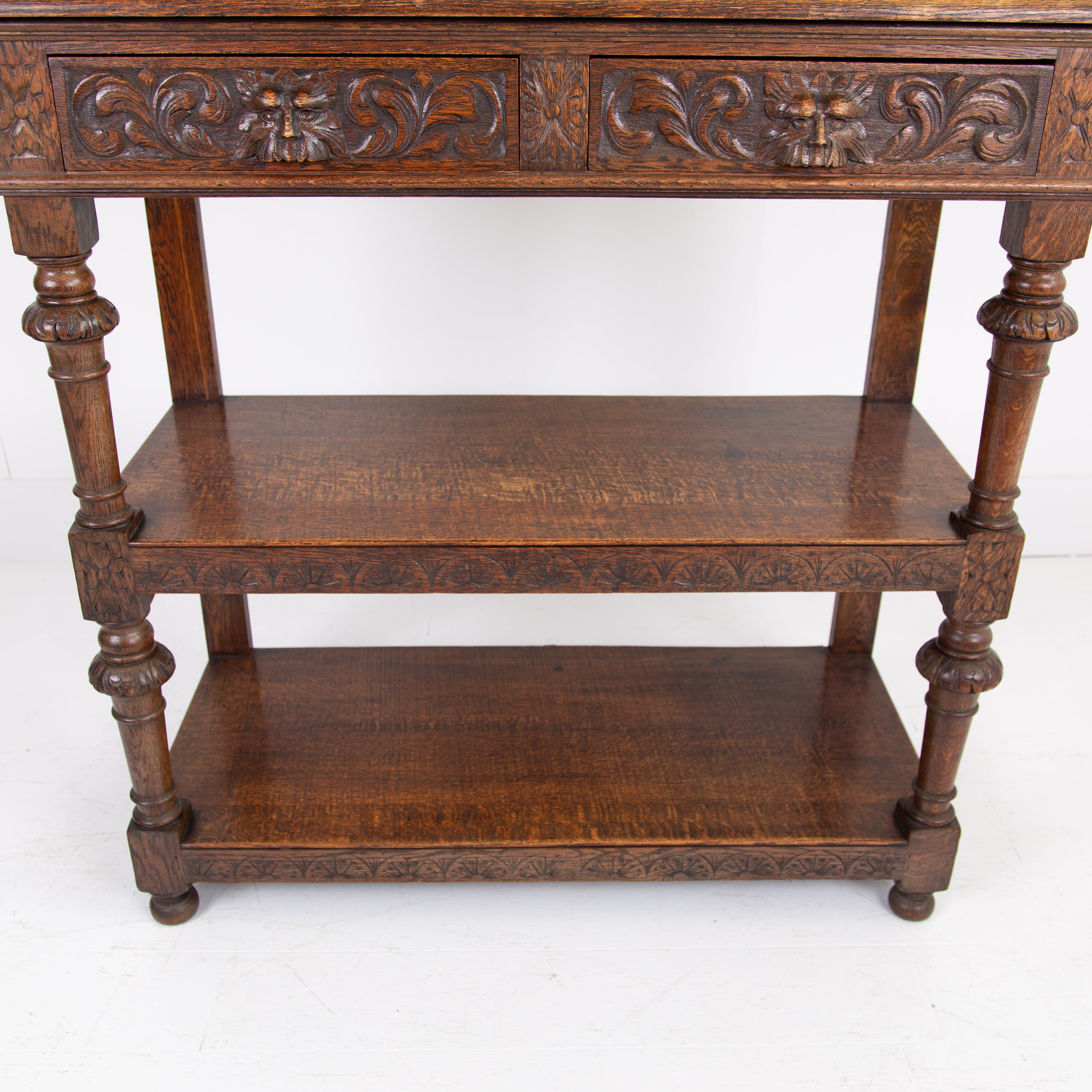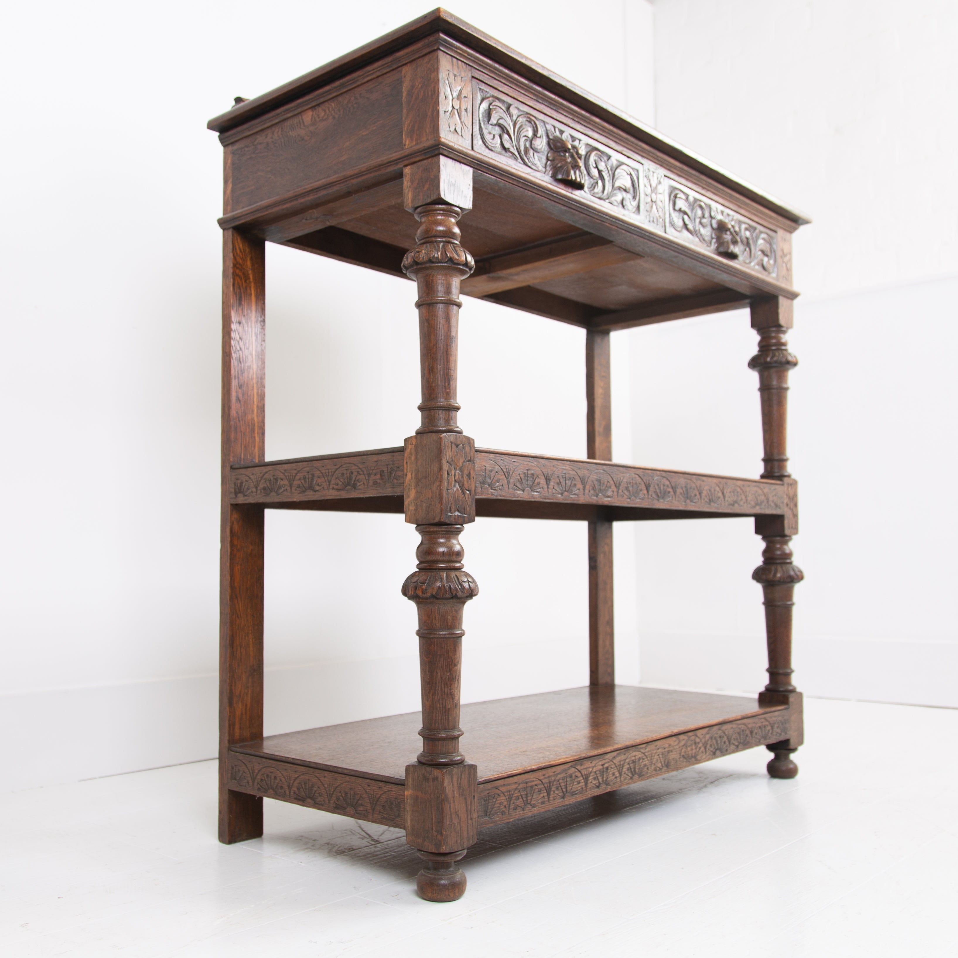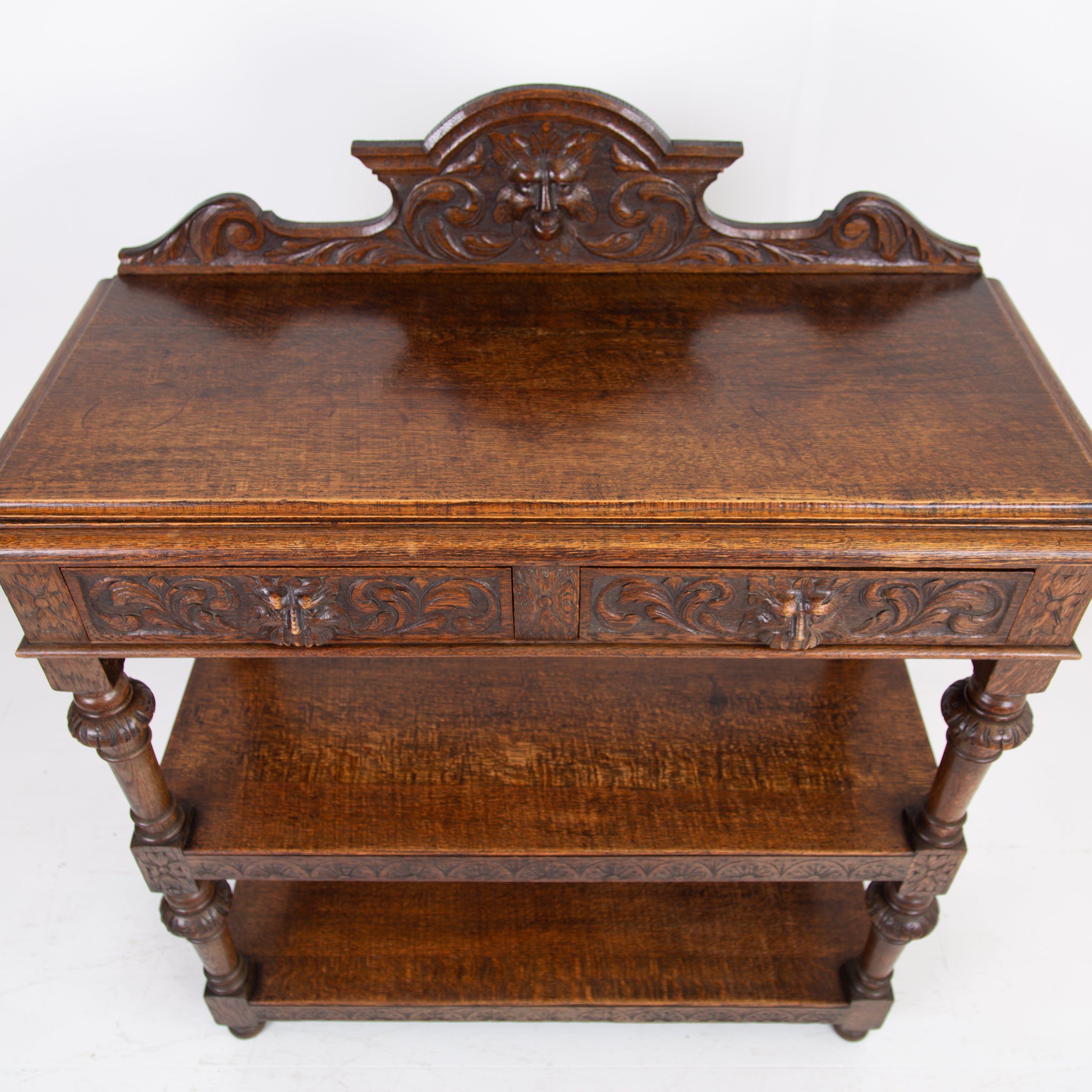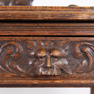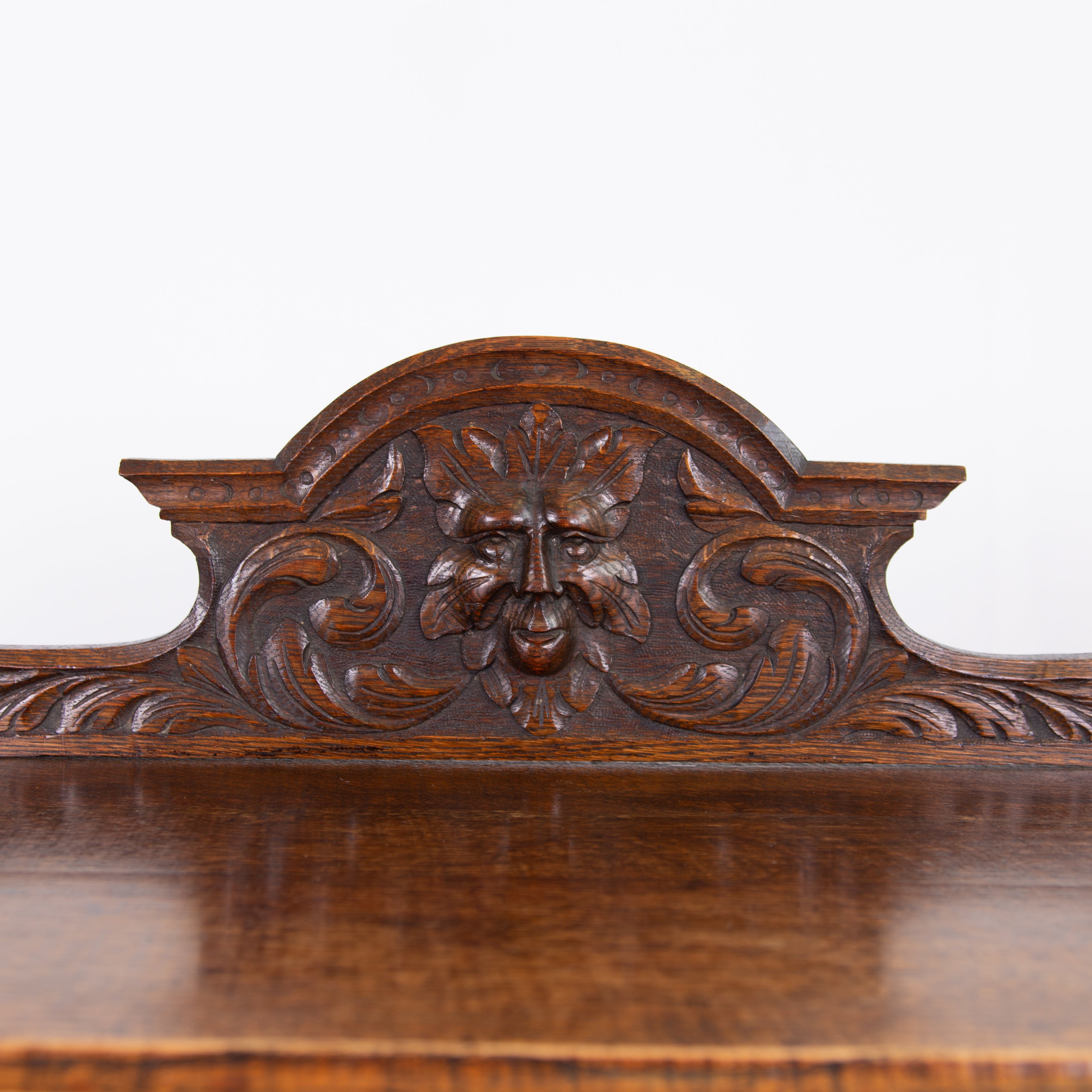 Antique English Victorian Carved Oak Green Man Buffet / Server / Sideboard / Dumbwaiter C1880