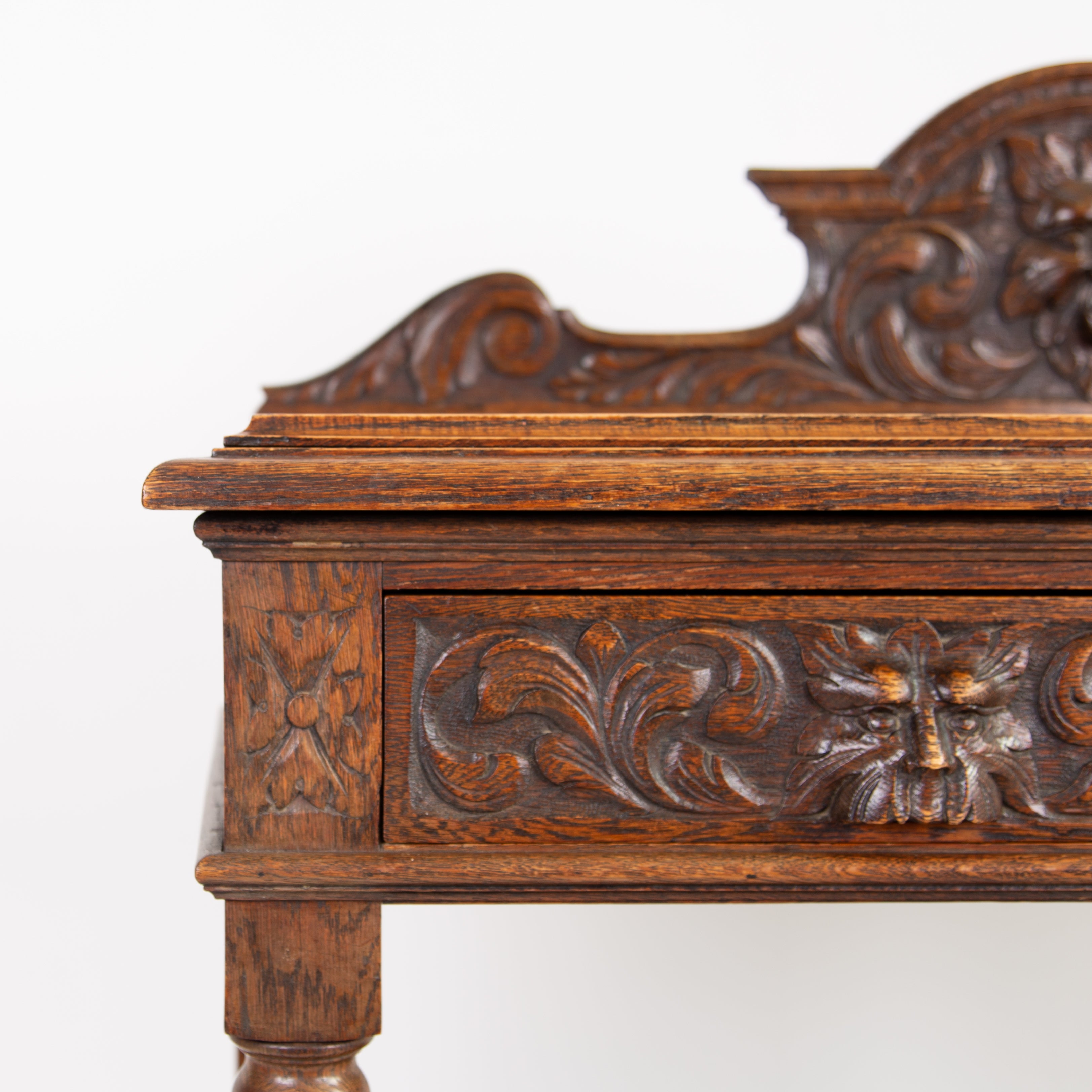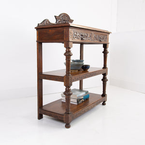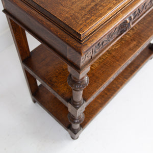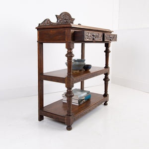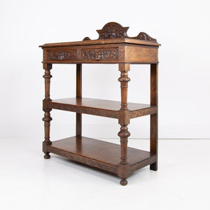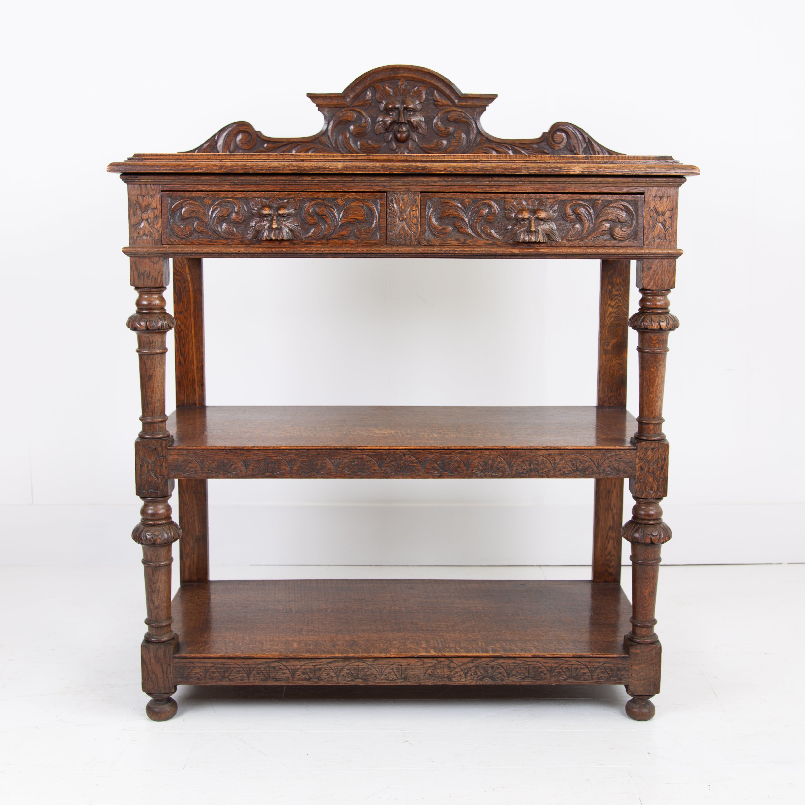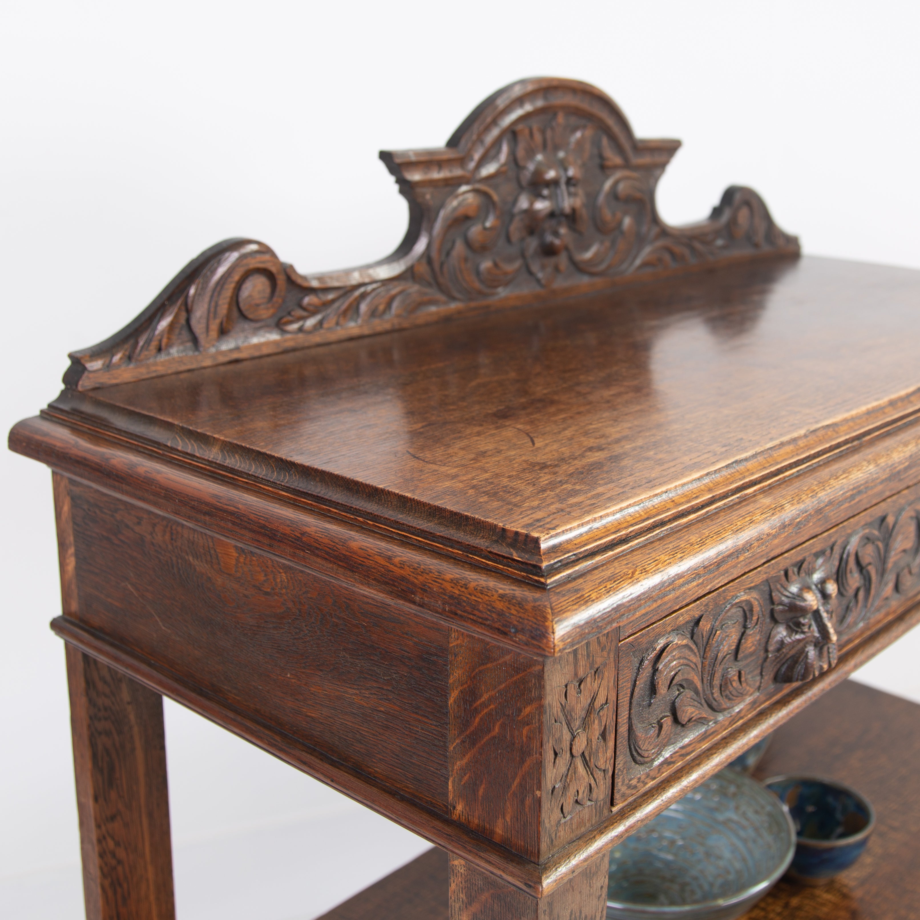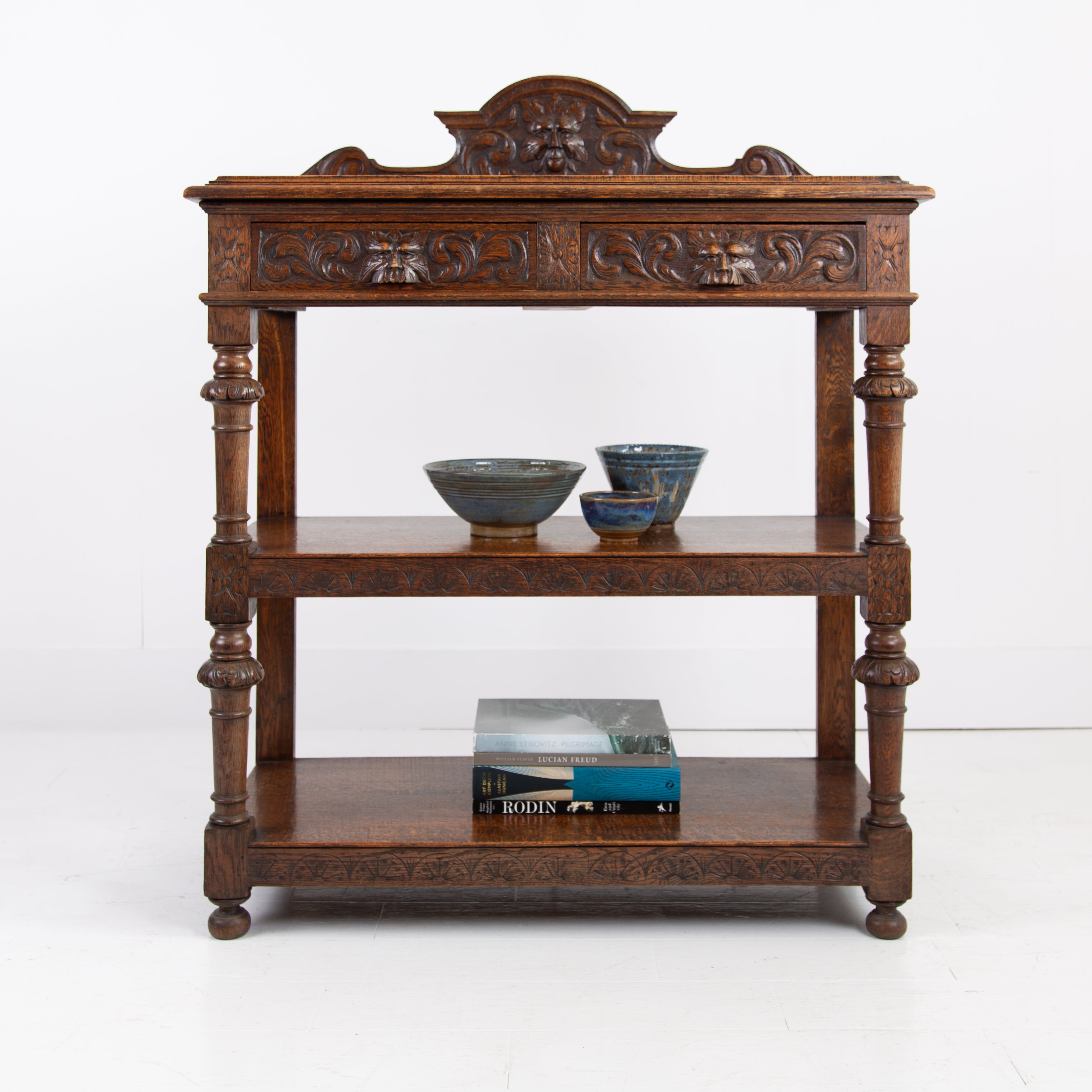 Antique English Victorian Carved Oak Green Man Buffet / Server / Sideboard / Dumbwaiter C1880