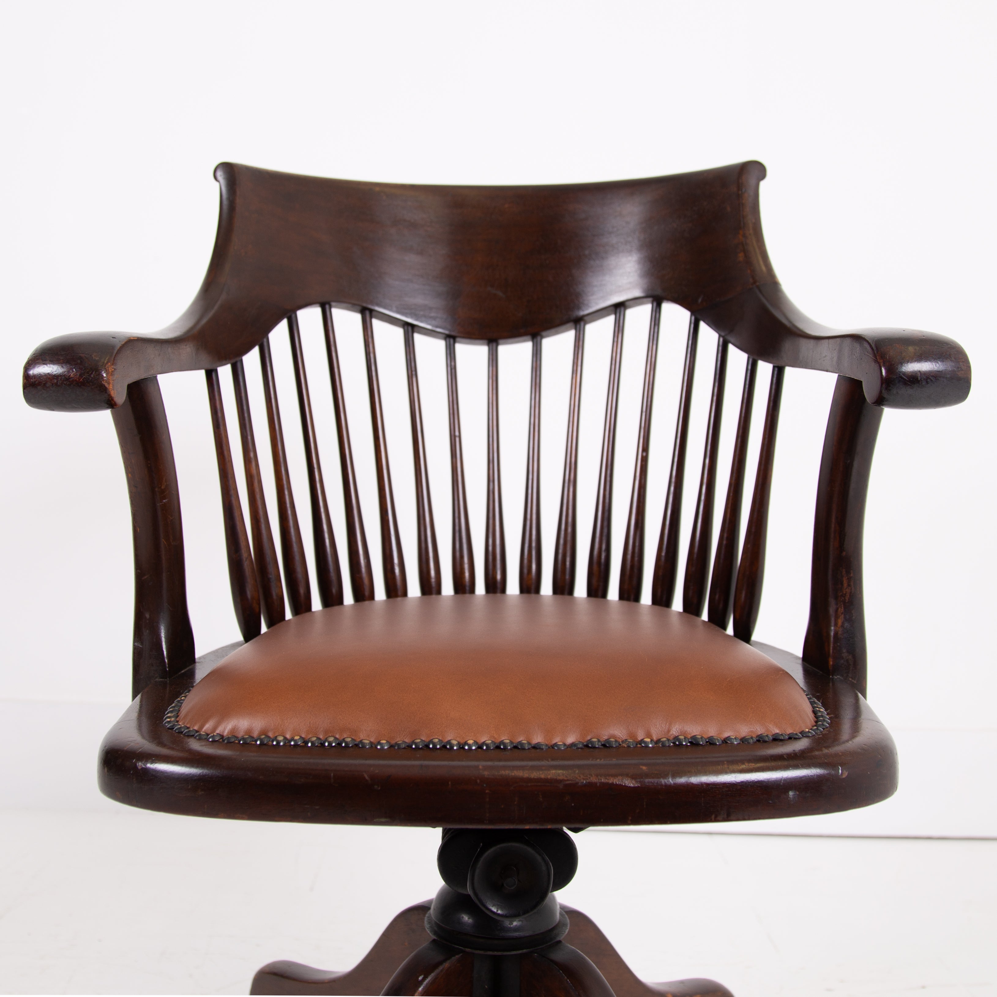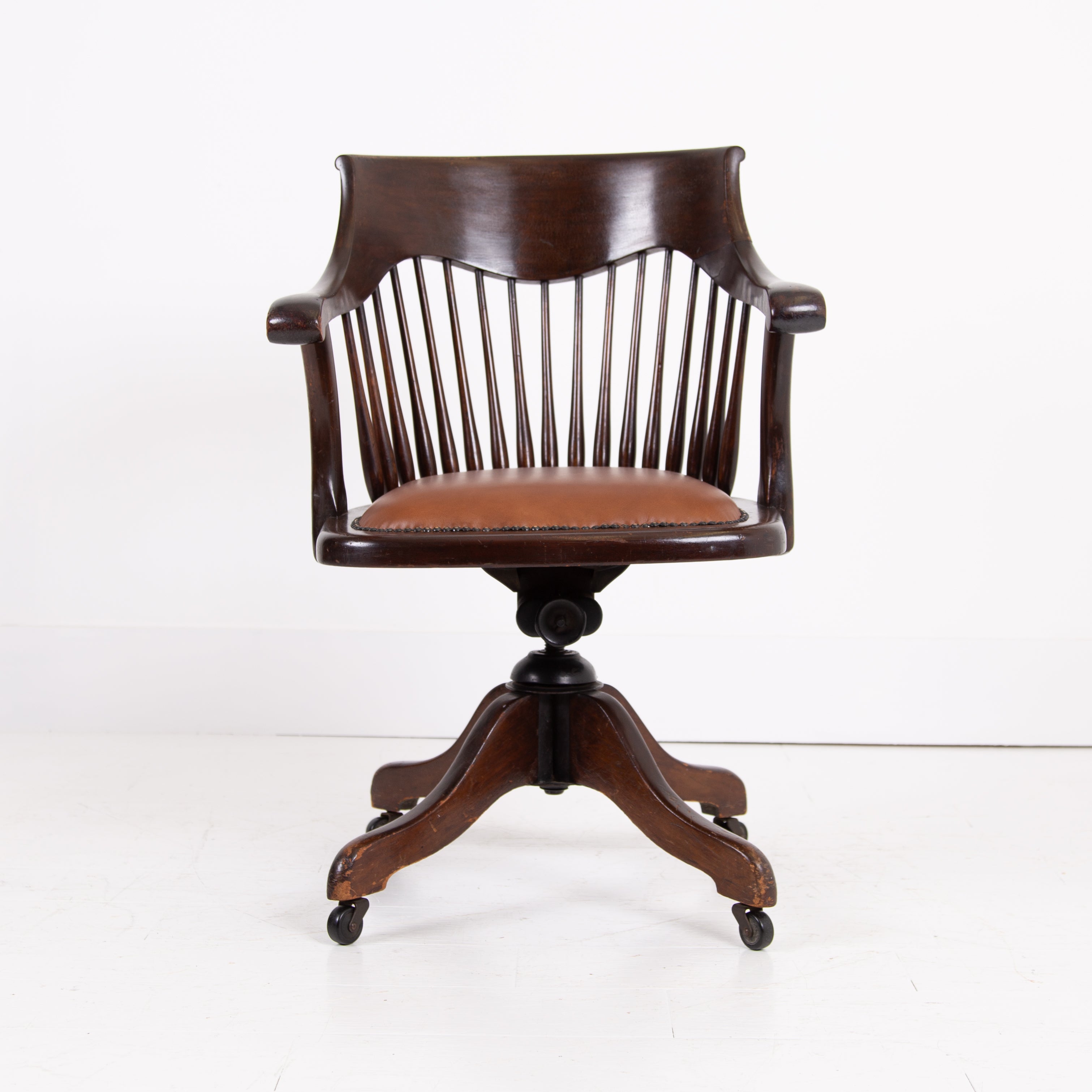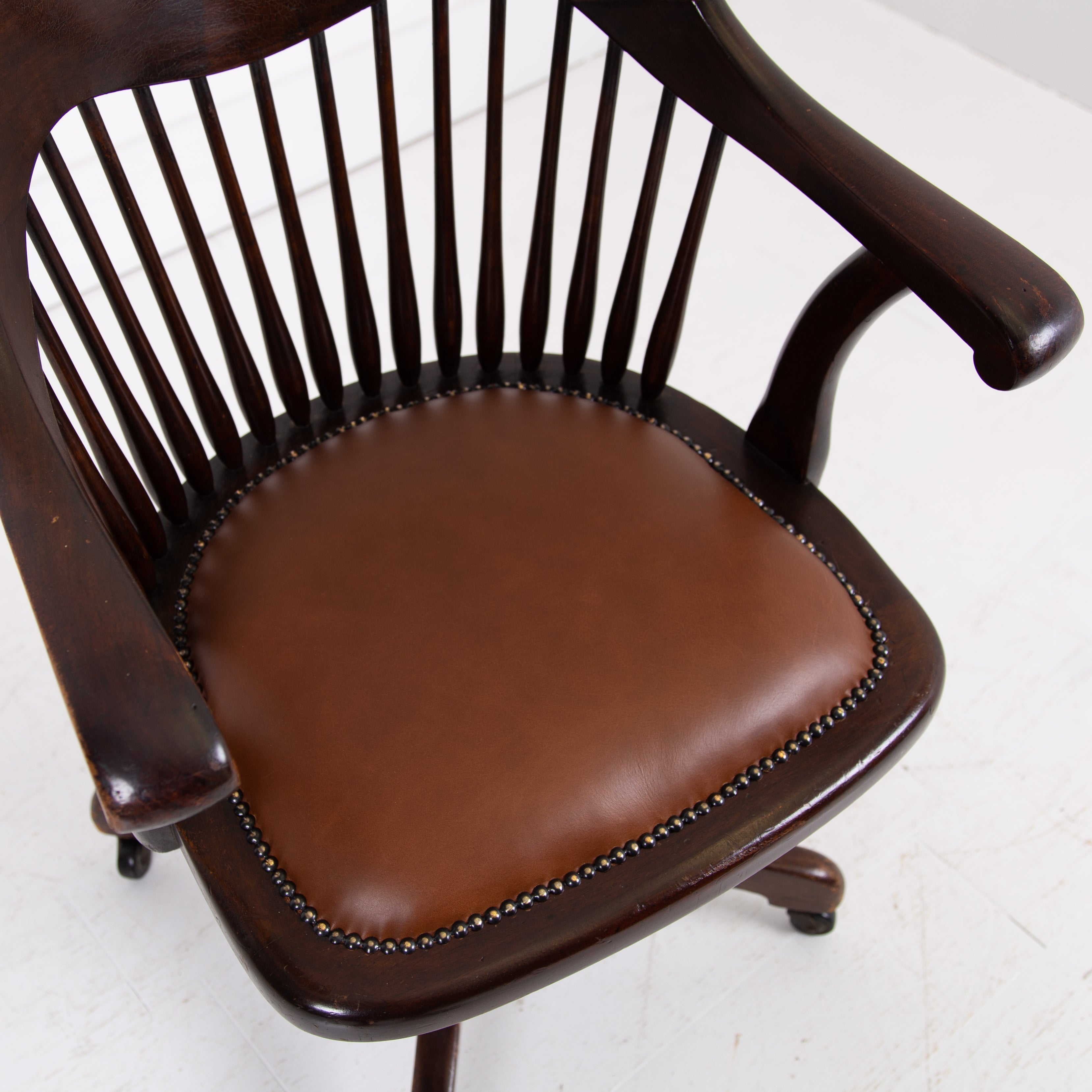 Antique Swivel Desk Chair New Leather Seat C1910 by Angus London