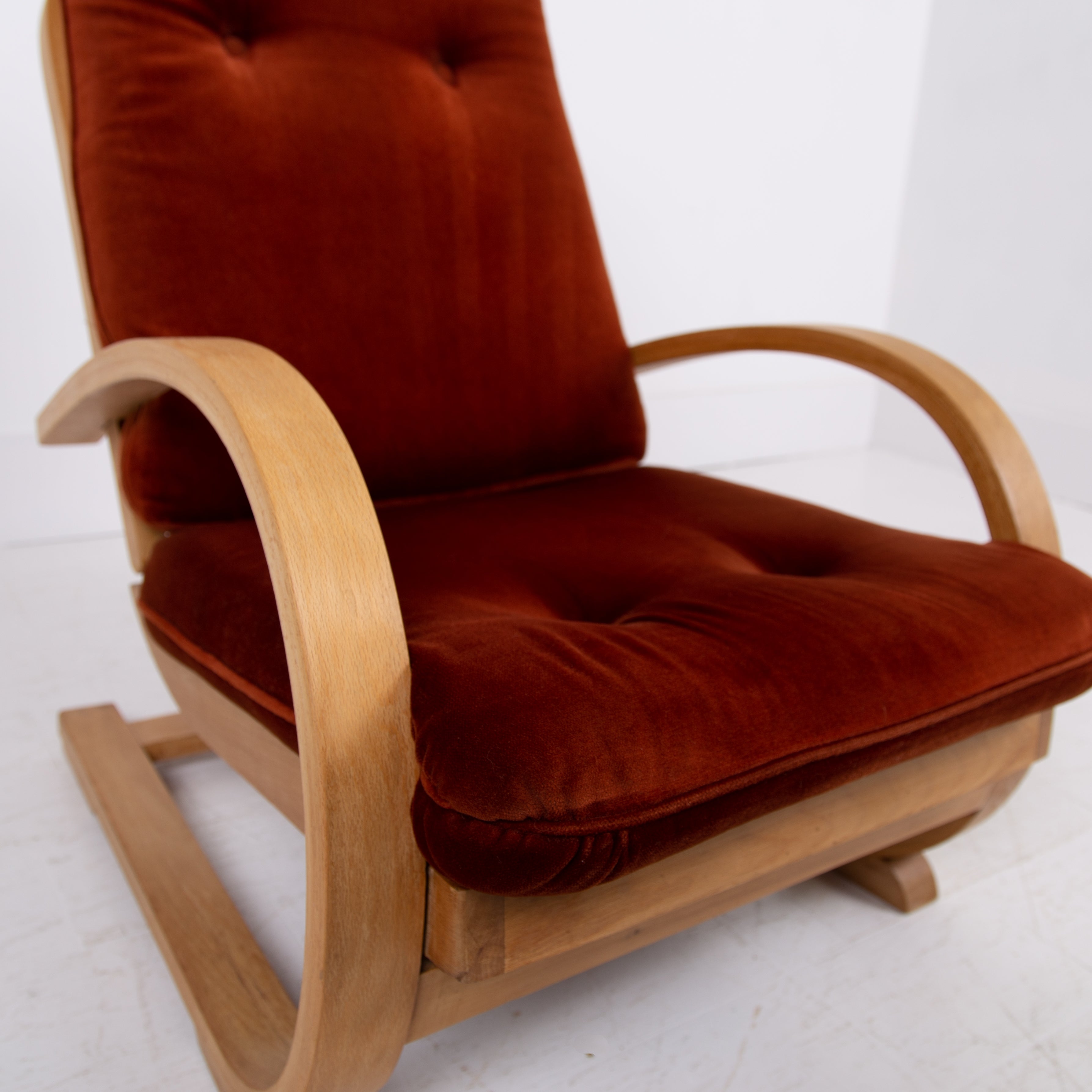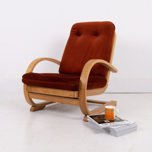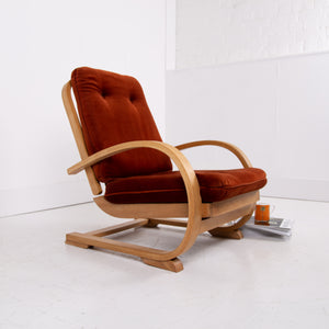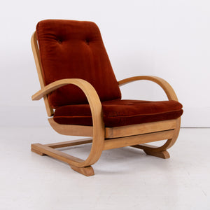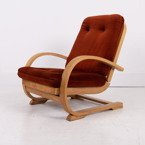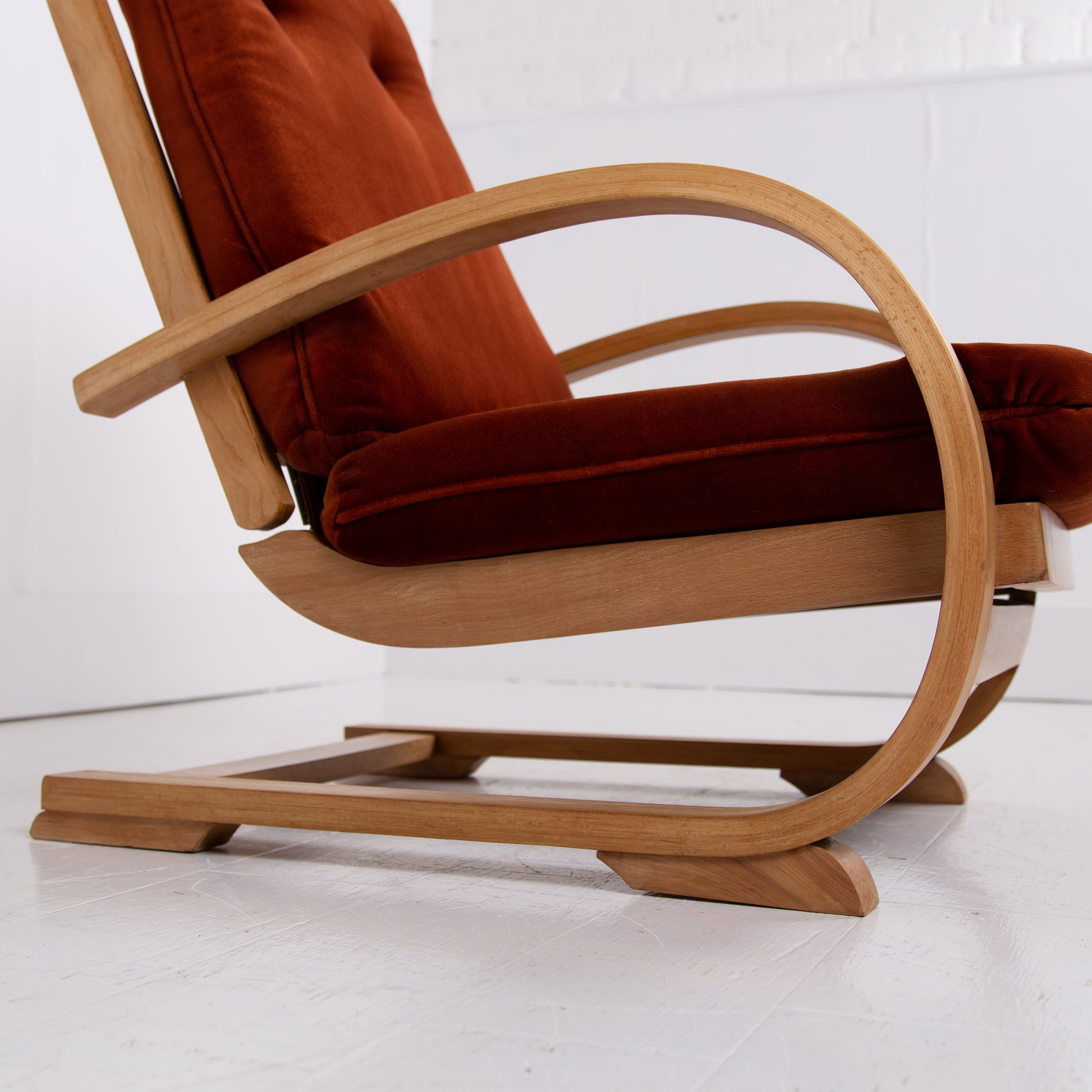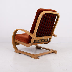 A great looking steamed bentwood cantilever armchair C1930s in fine historic order. Like many of these types of chairs the design and shape is highly pleasing to the eye and couple this with the cantilever style, they are highly comfortable.
