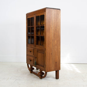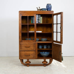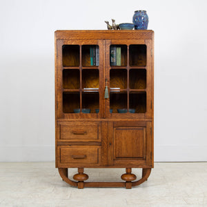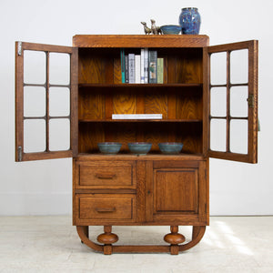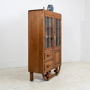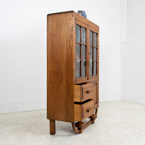 Attractive Art Deco Oak Glazed Cabinet Bookcase C1930