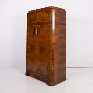 Art Deco Small Walnut Wardrobe Cabinet C1930