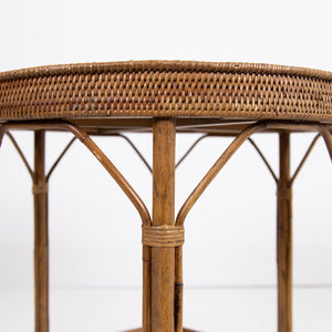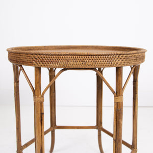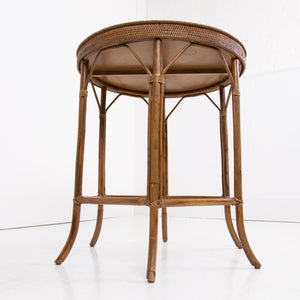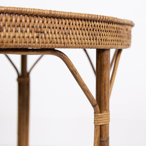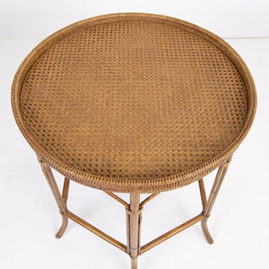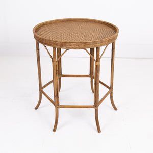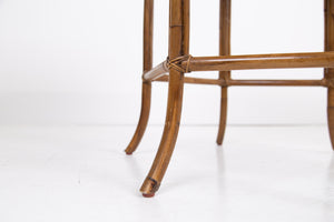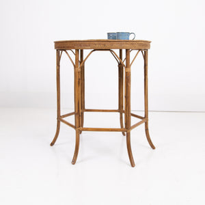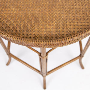 A well sized Mid Century side table with an attractive stance and sitting in fine order with light day to day wear. Sitting a little larger than most, we have a deep sided woven cane top with the well shaped legs making it great for so many spots in the home.