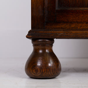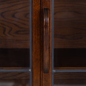 Condition is good with light well cared for wear to the well toned and grained oak. The doors open to reveal a set of 4 adjustable solid oak shelves. We have lightly waxed the cabinet and ensured it is ready for placing.