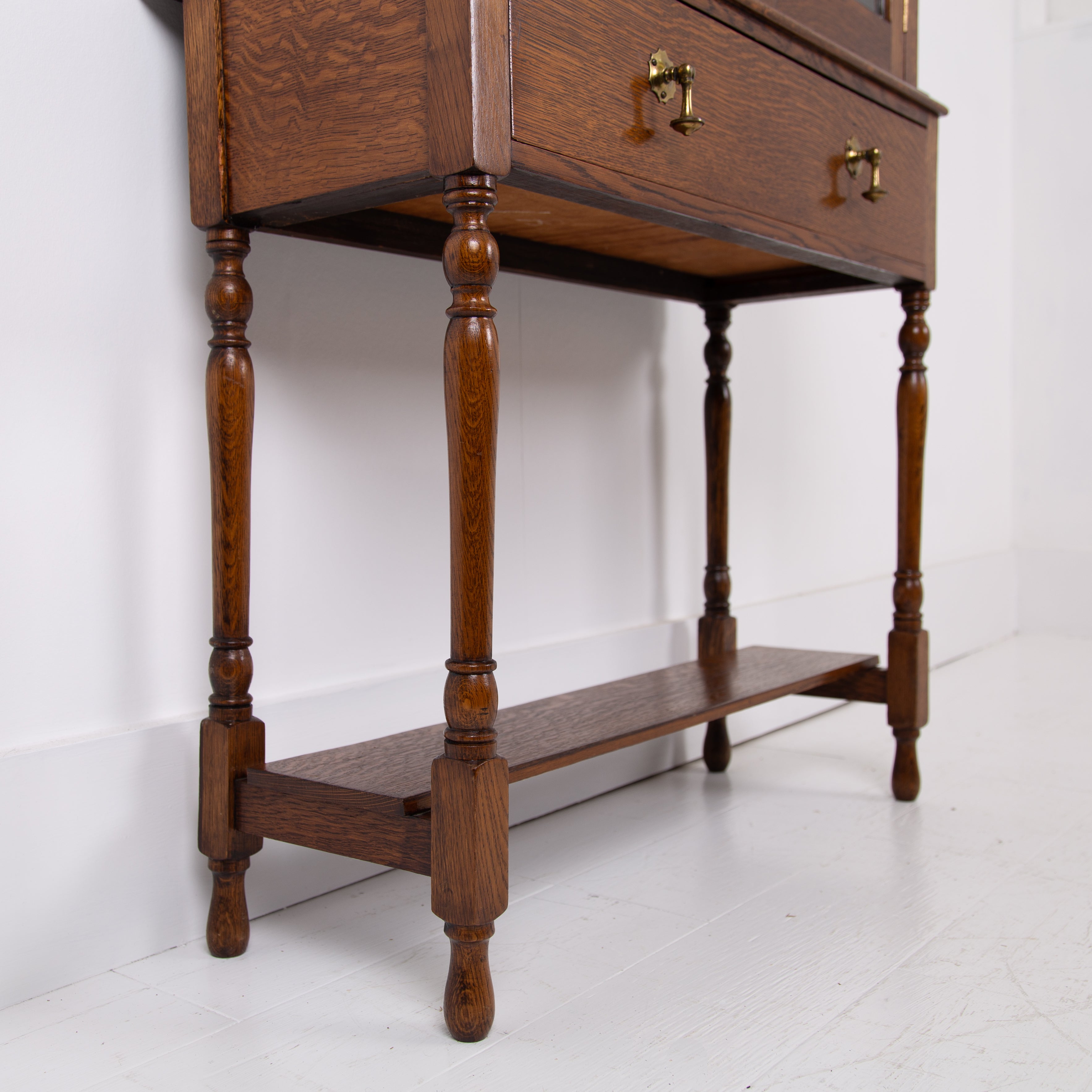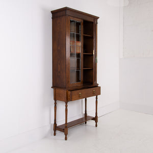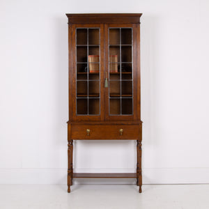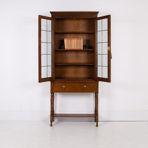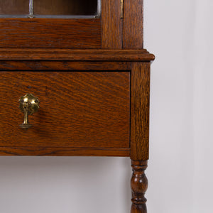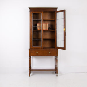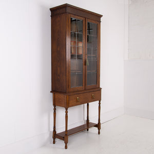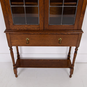 Attractive English Oak Glazed Bookcase with Drawer C1920