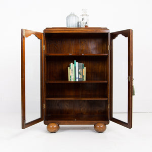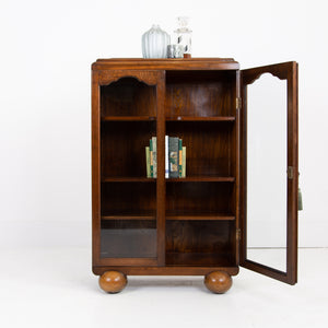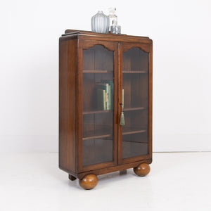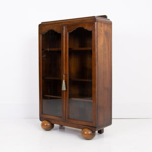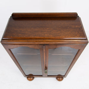 Attractive Oak Art Deco Glazed Bookcase Cabinet C1930s