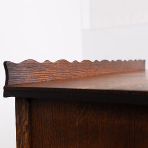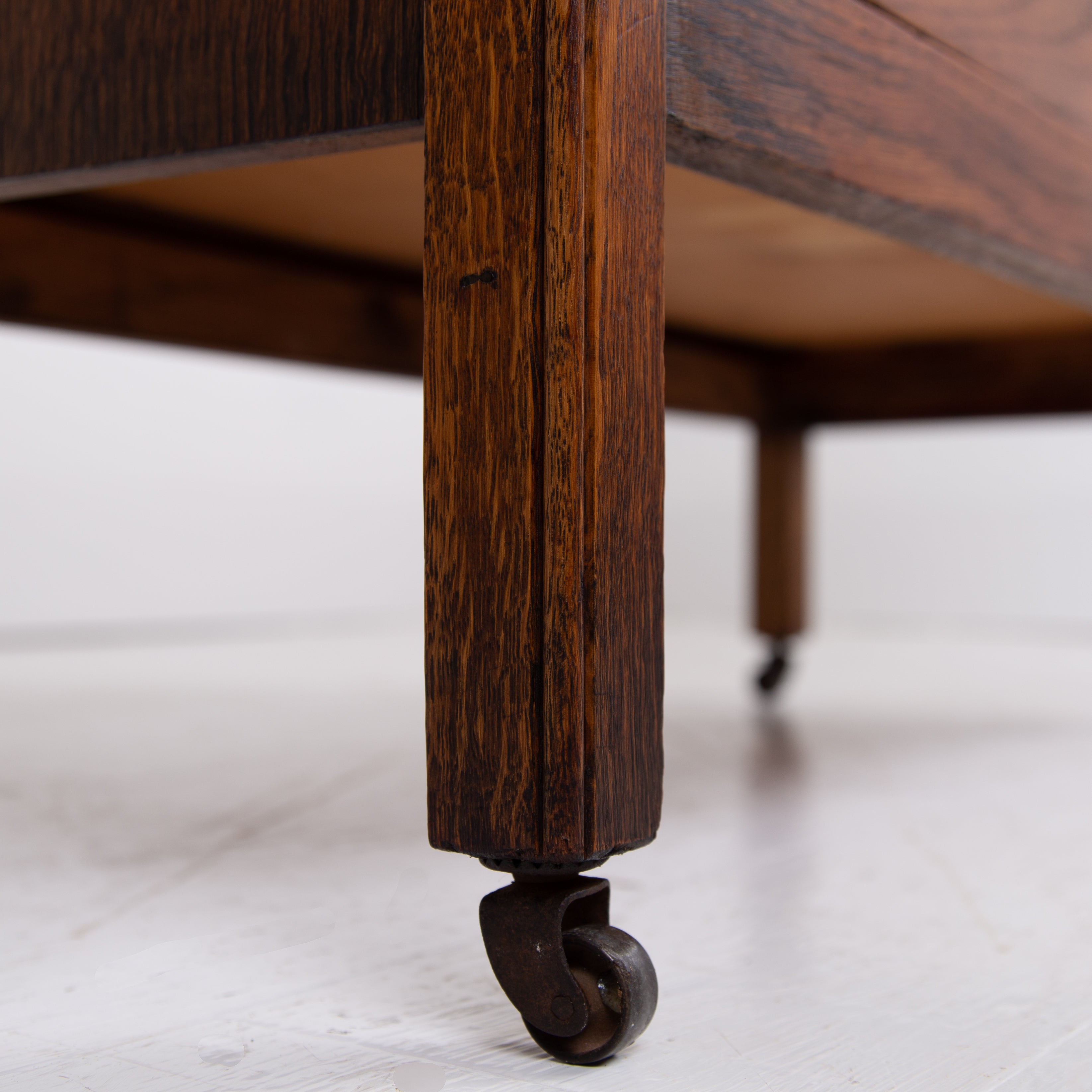 Liking the little wavey oak upstand, those iron castors to the ends of the slender legs, well shaped oversailing top and the simple, pleasing on the eye look. Condition is good having spent a session in our workshop so expect sensible historic wear and marks. We have ensured the chest is clean inside and out and it enjoyed a light hand waxing. Ready to place wherever you so desire…