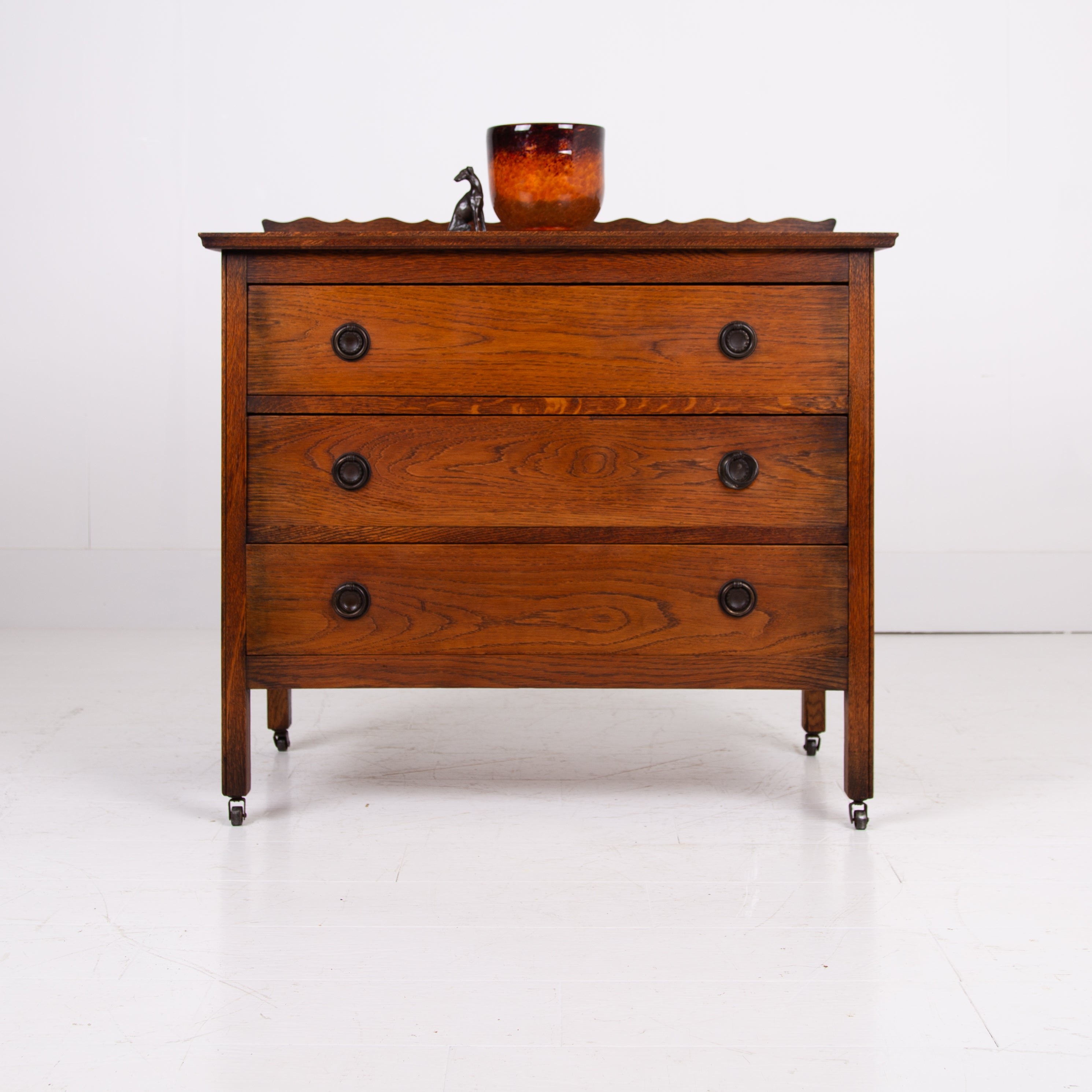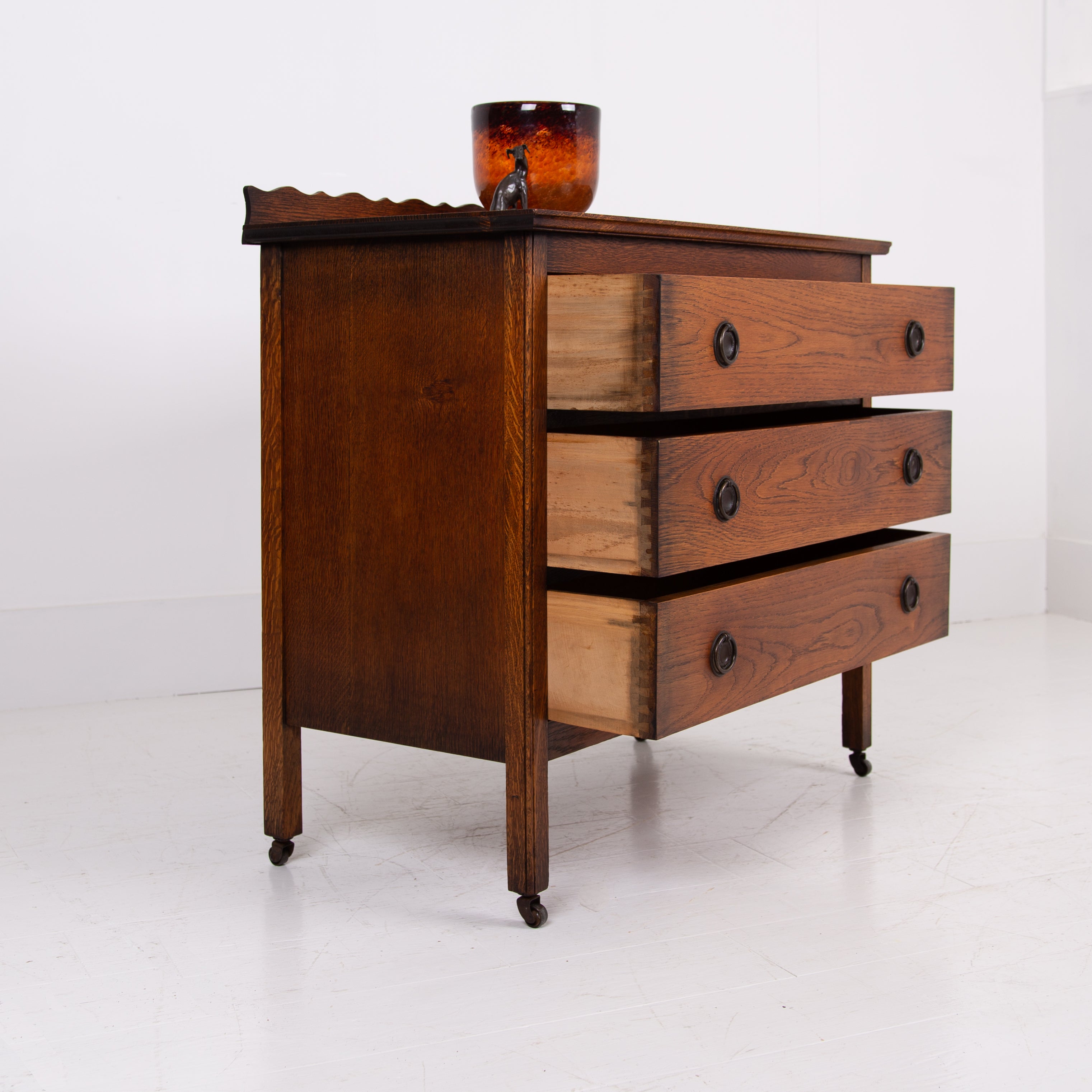 A smart and appealing 3 drawer oak chest of drawers English C1920s.