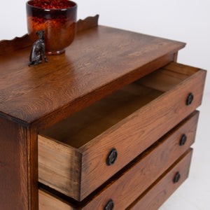 A rather charming little oak chest of drawers dated 1926 in lovely condition and the perfect piece for so many spaces.