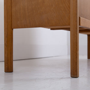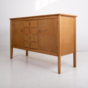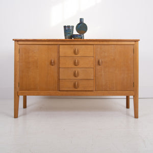 Here we have a wonderful oak Gordon Russell sideboard. Most of the sideboards of this type are finished in walnut and not so many in lighter oak. The sideboard possesses the maker's badge to the rear and sits in fine order. These would have been retailed through Heal’s and the like and the craft quality and design is as you would expect, 1st rate from the Russell workshop.