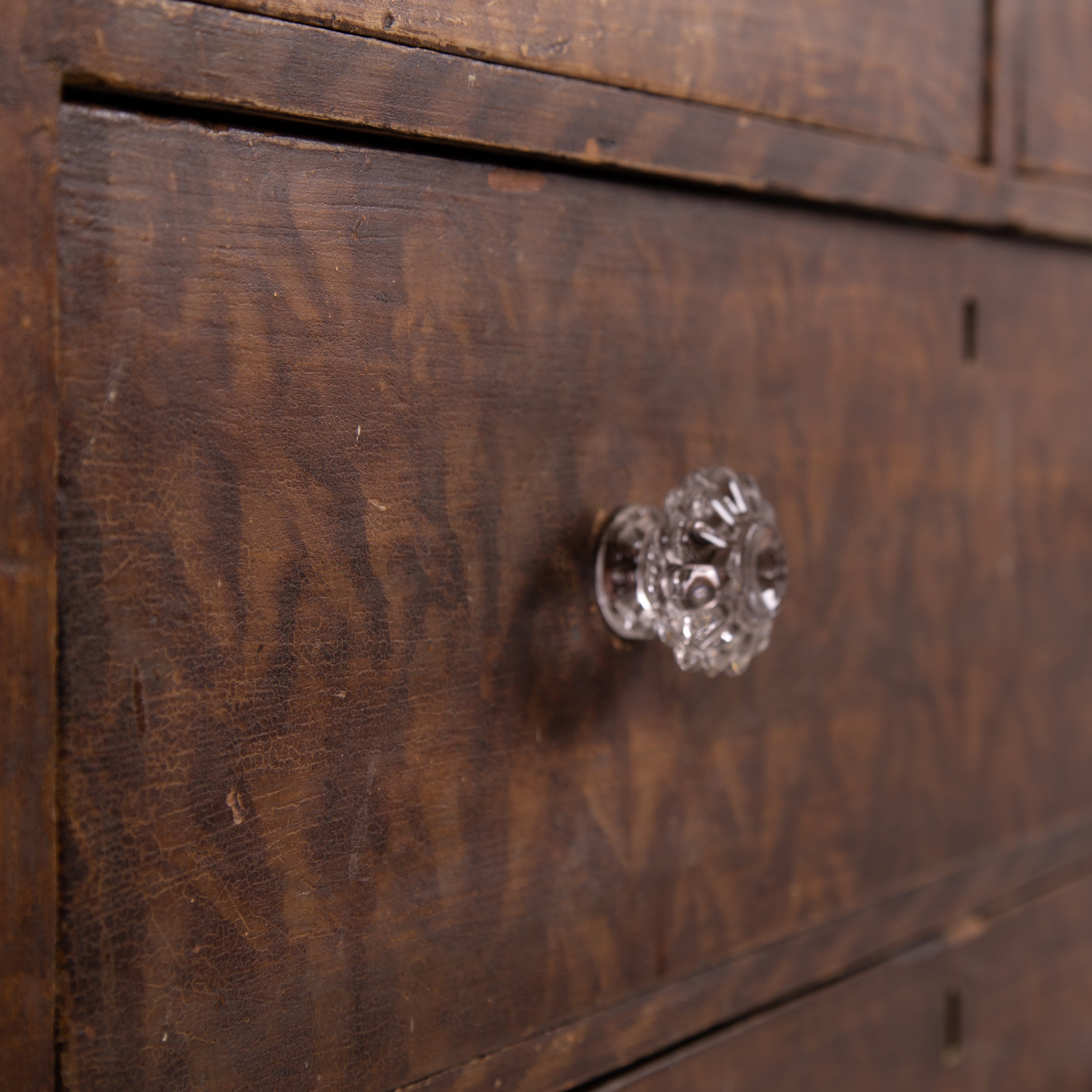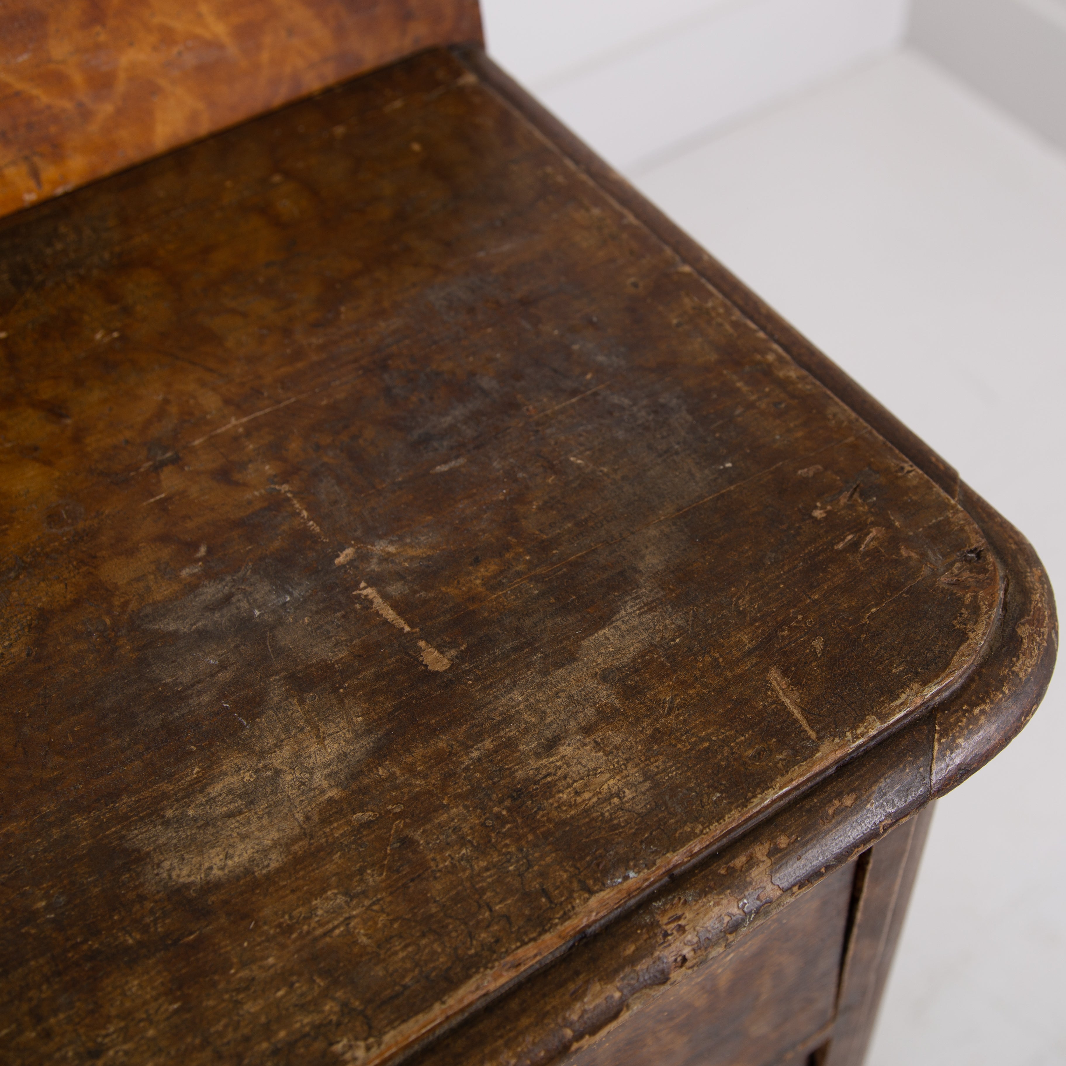 Colour wise we have a caramel, toffee mix to all parts, an interesting attractive pattern and a grainy worn finish. The piece sits well with genuine wear, the drawers are a little worn and we have ensured its ready to place with clean drawers etc.
