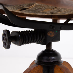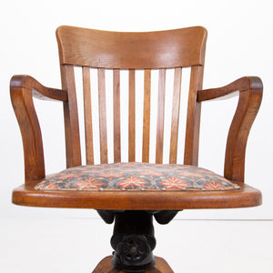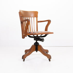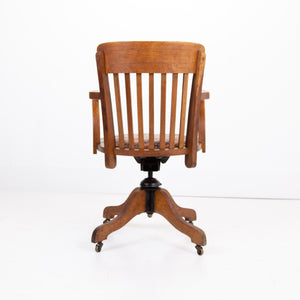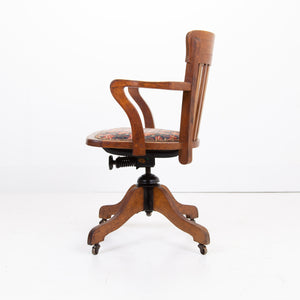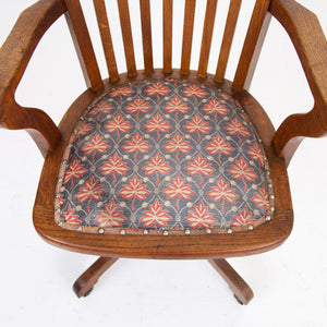 English Edwardian Antique Swivel Oak Office Desk Chair