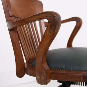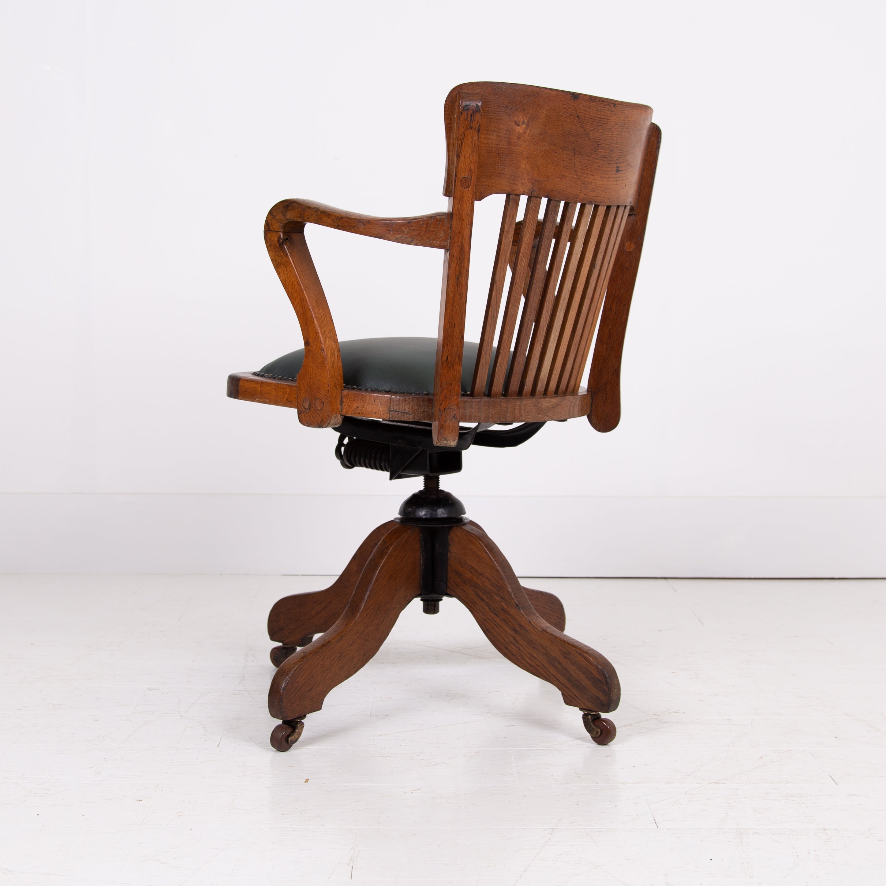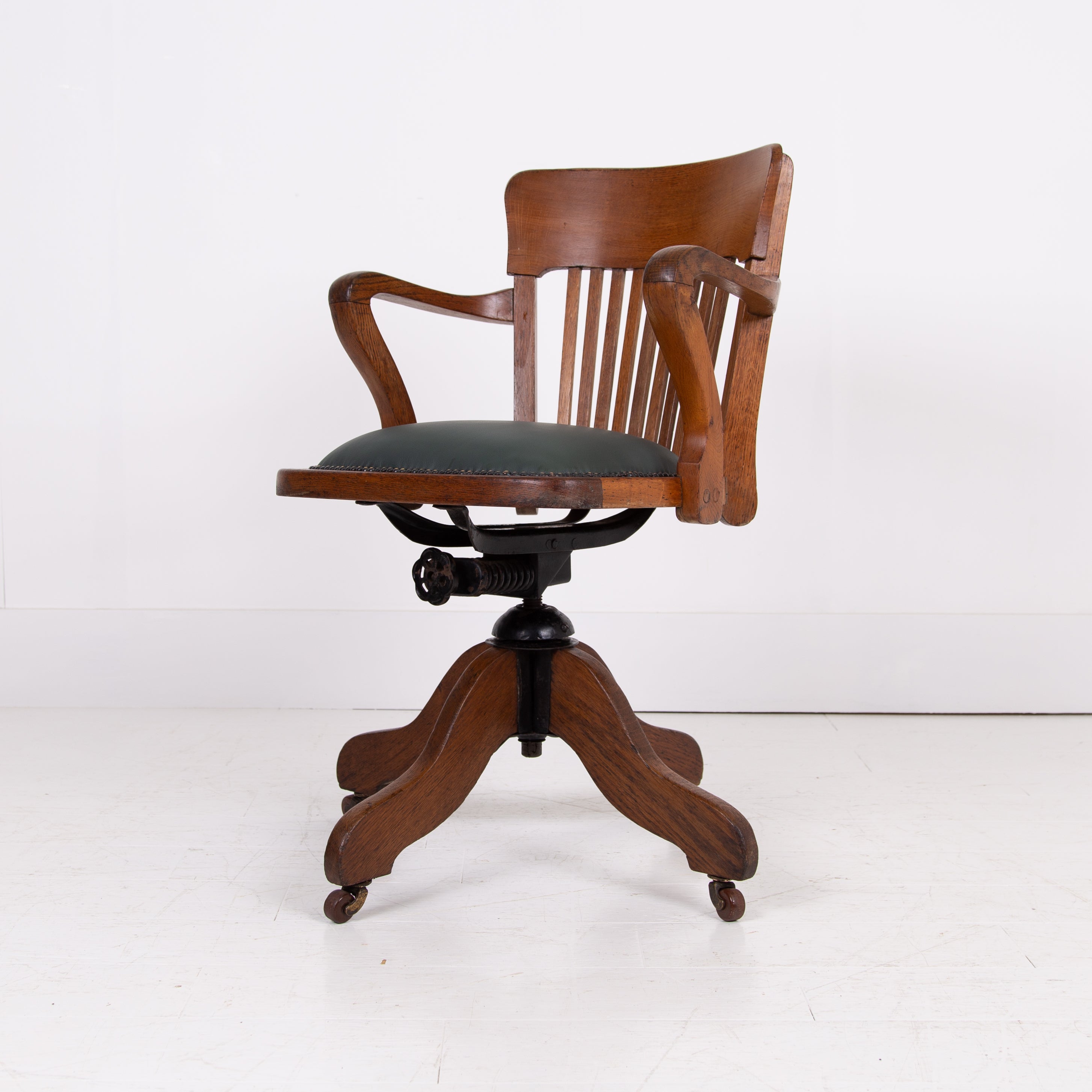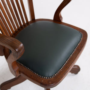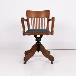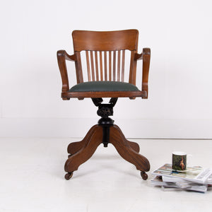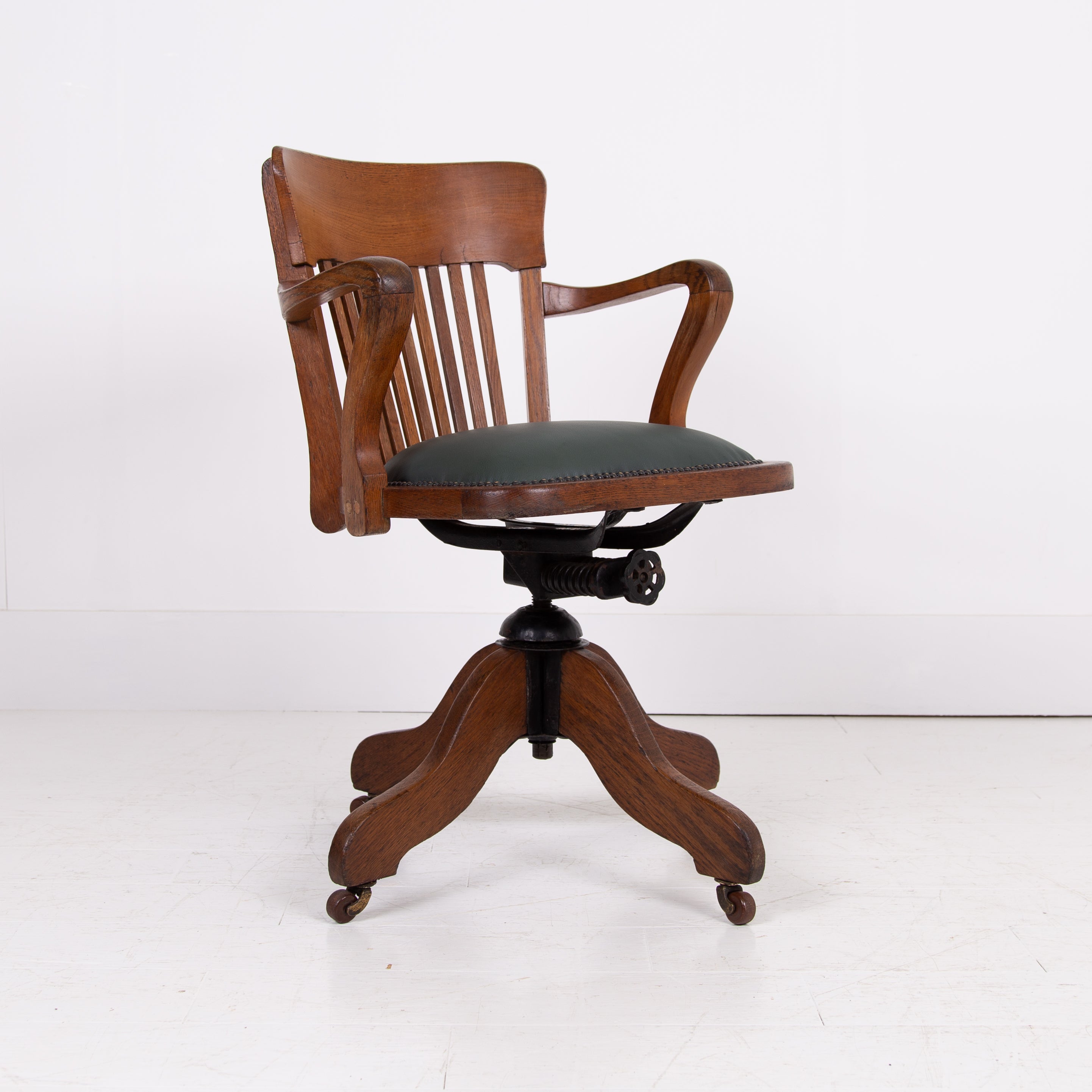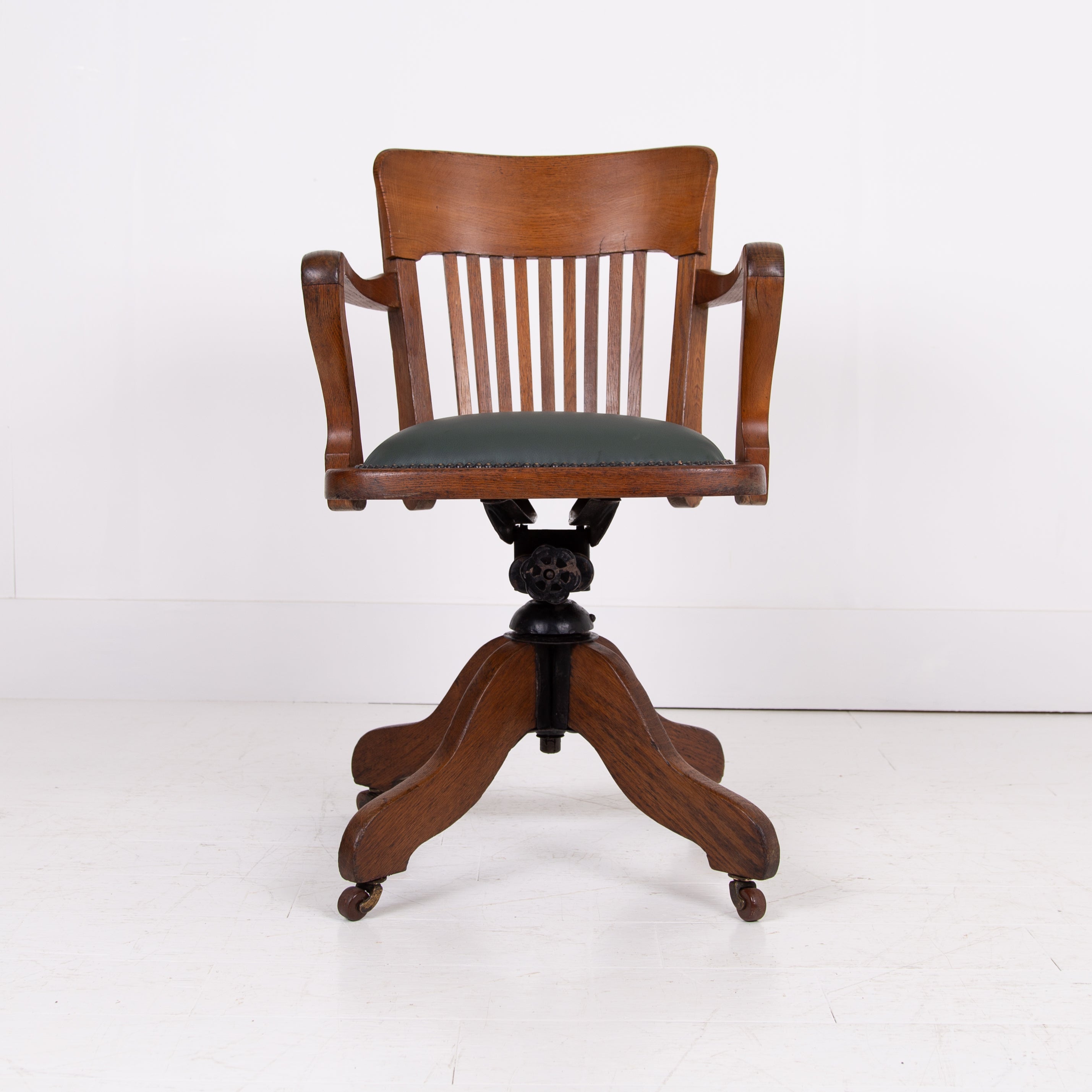 English Edwardian Antique Swivel Oak Office Desk Chair