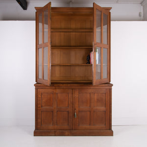 A superb quality solid English oak Arts & Crafts bookcase from a school library in the Home Counties. He is a tall chap and sits very handsomely in a lovely tone of timber and is an effortless design compared to some taking its influence from the Arts & Crafts era with a sense of real craftsmanship in its construction - true joints, balanced use of timber and good hardware.