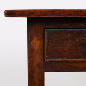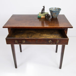 A good looking George III period table in oak with a long single drawer making it useful as a possible desk being of good height.
