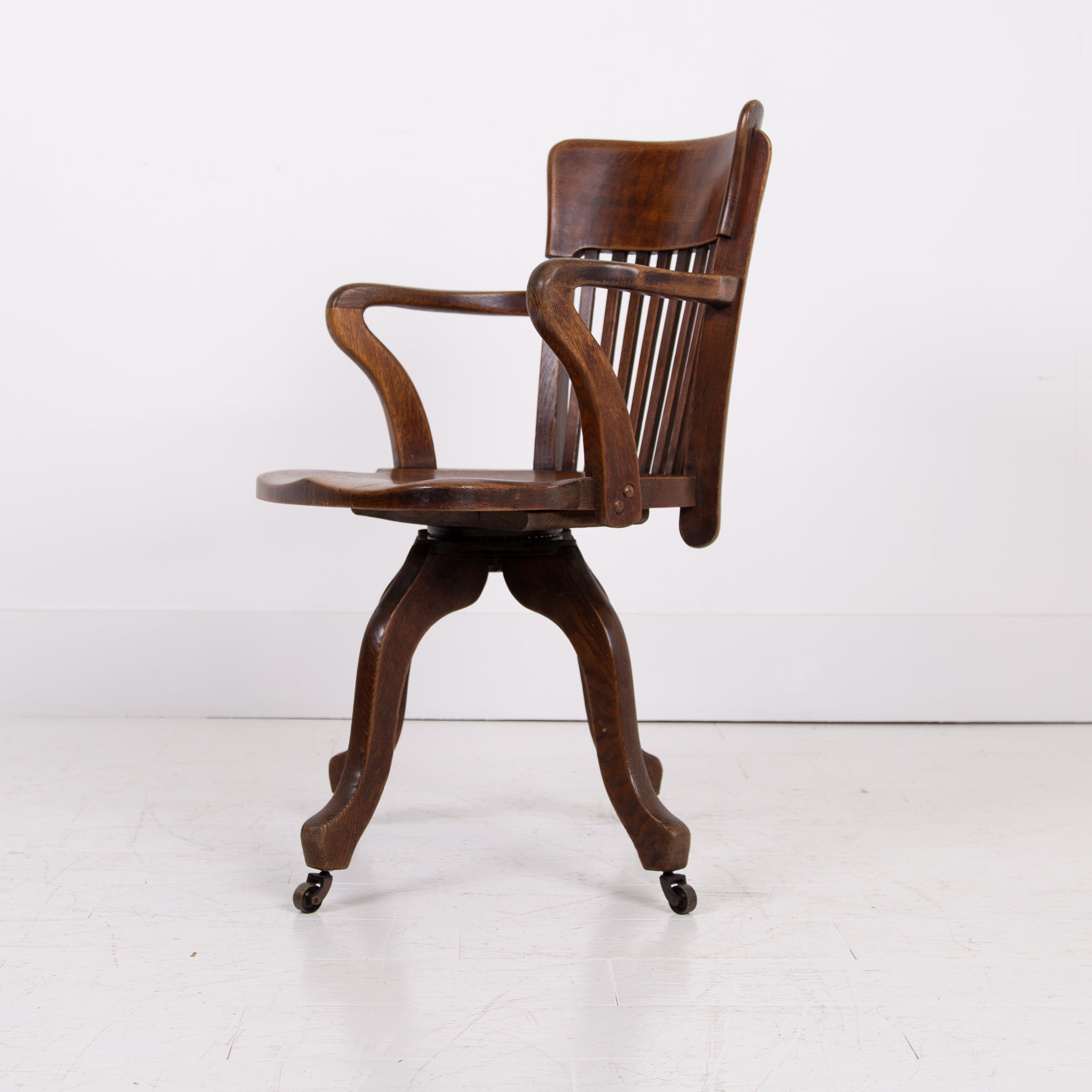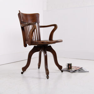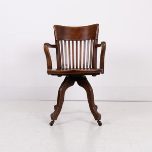 Handsome Antique Oak Swivel Desk Office Chair C1920