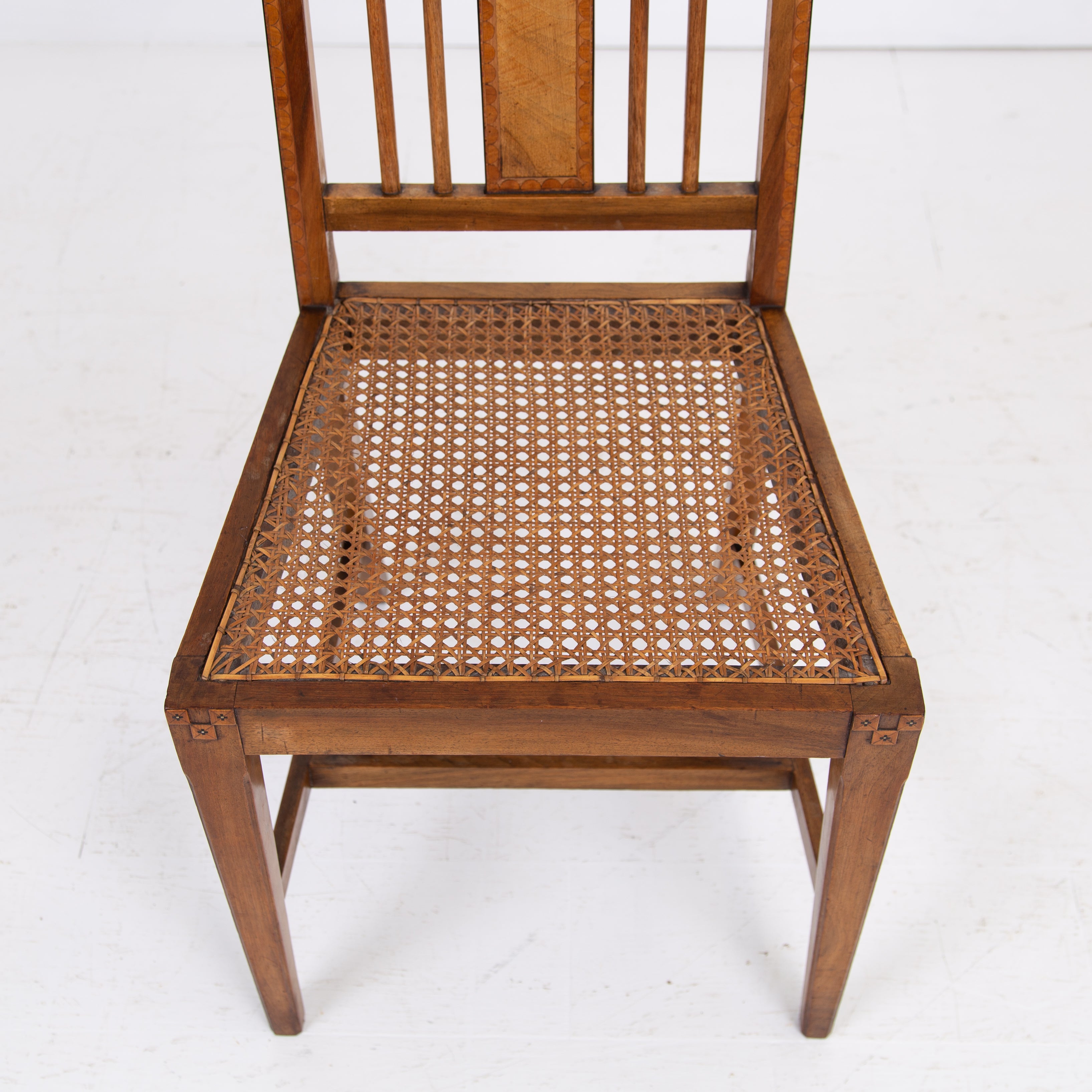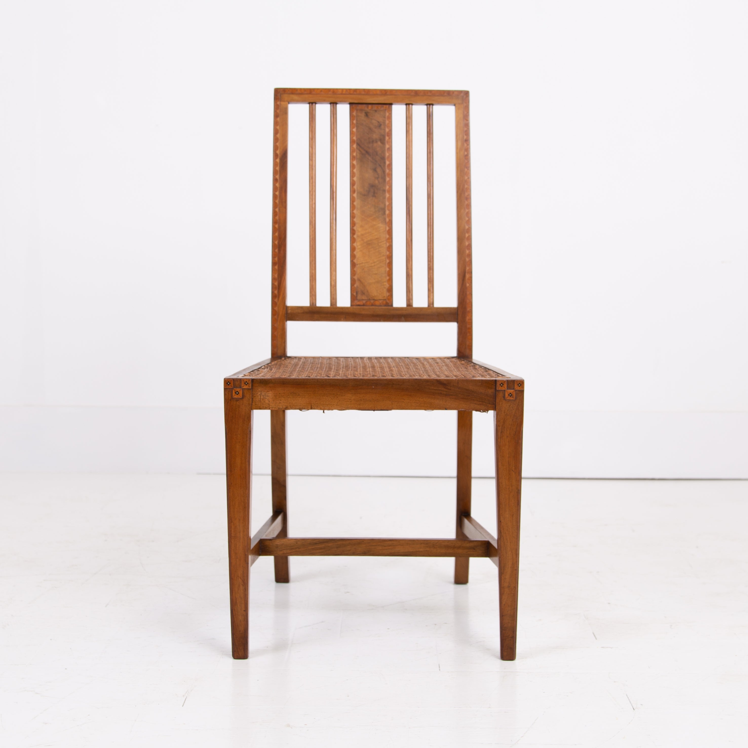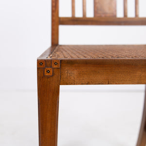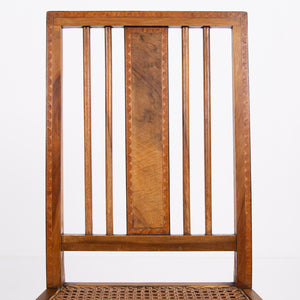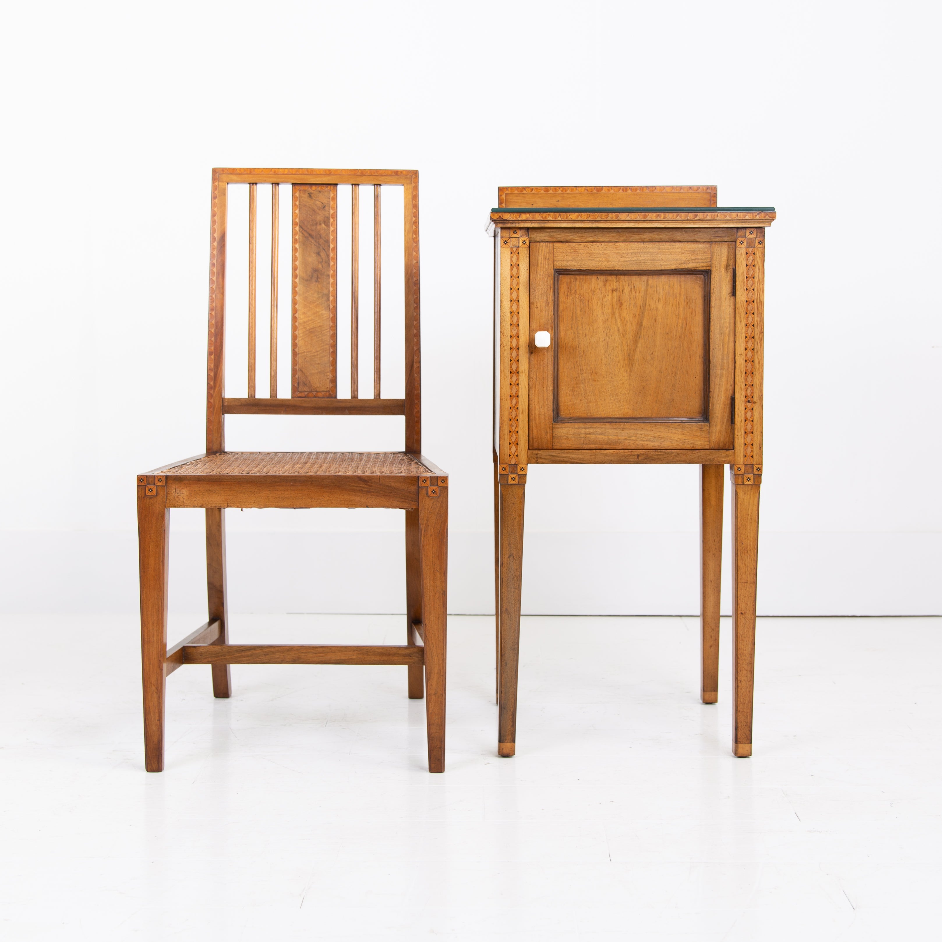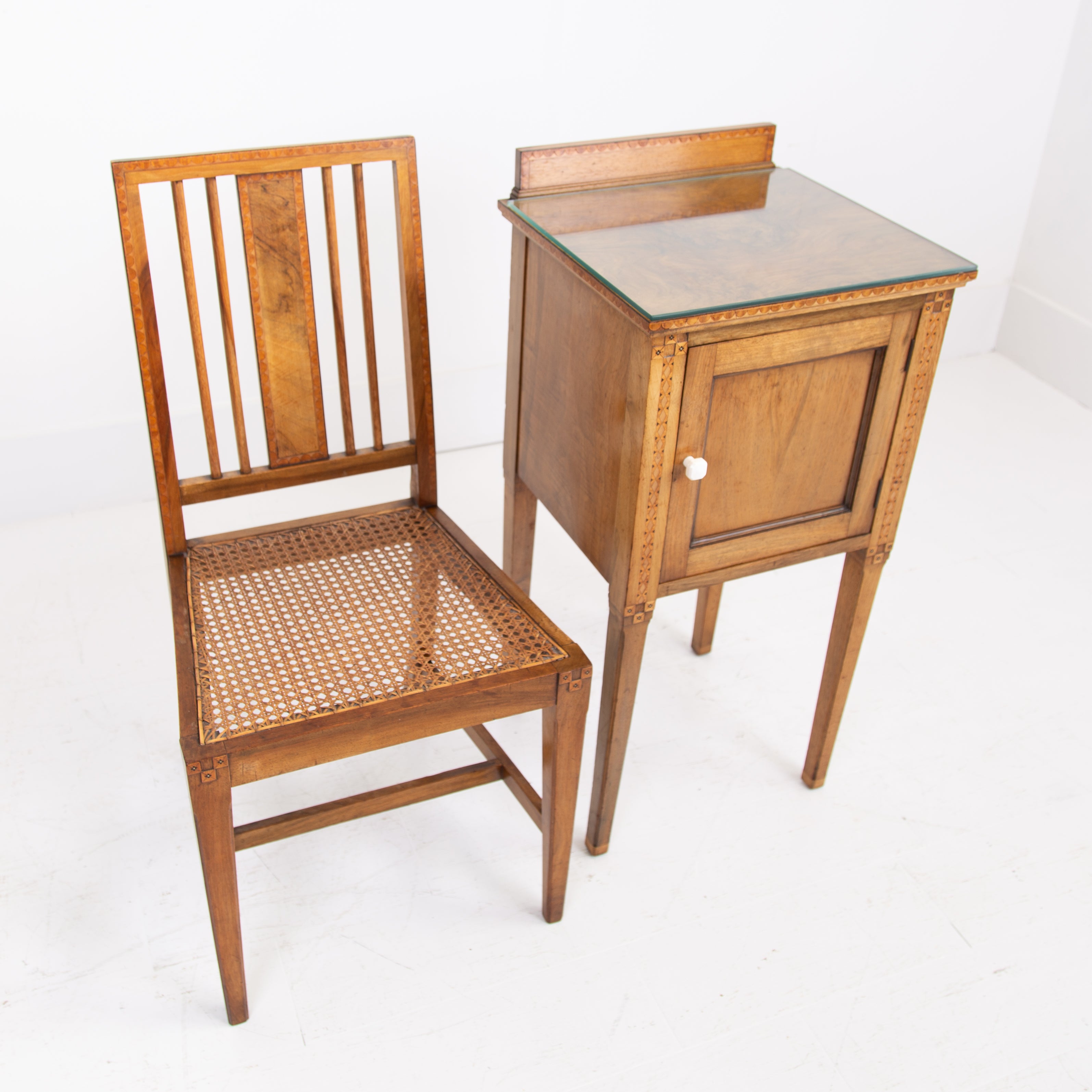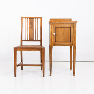 A super little side cupboard and matching cane seat chair ‘Gaylayde’ by B Cohen & Sons of London. Dating to C.1930 and of super quality, it features intricate geometric inlaid bandings in mahogany, satinwood, ebony and walnut to both pieces, lovely design and possesses great features.
