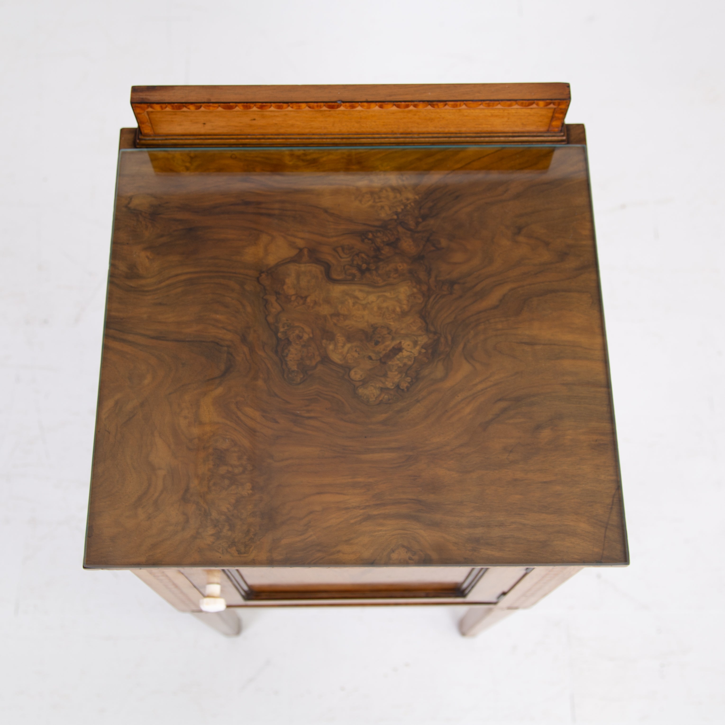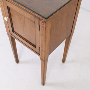 The little cupboard would work well in a bedroom, bathroom or hall and the chair likewise. Both pieces sit in good order with historic wear - the cane seat is in good order and both pieces are ready to place in your home. The cupboard benefits from a toughened glass top.