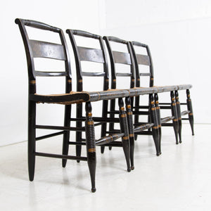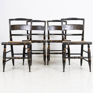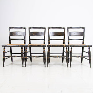 Set of 4 19th Century Black Painted Lambert Hitchcock Side Dining Chairs