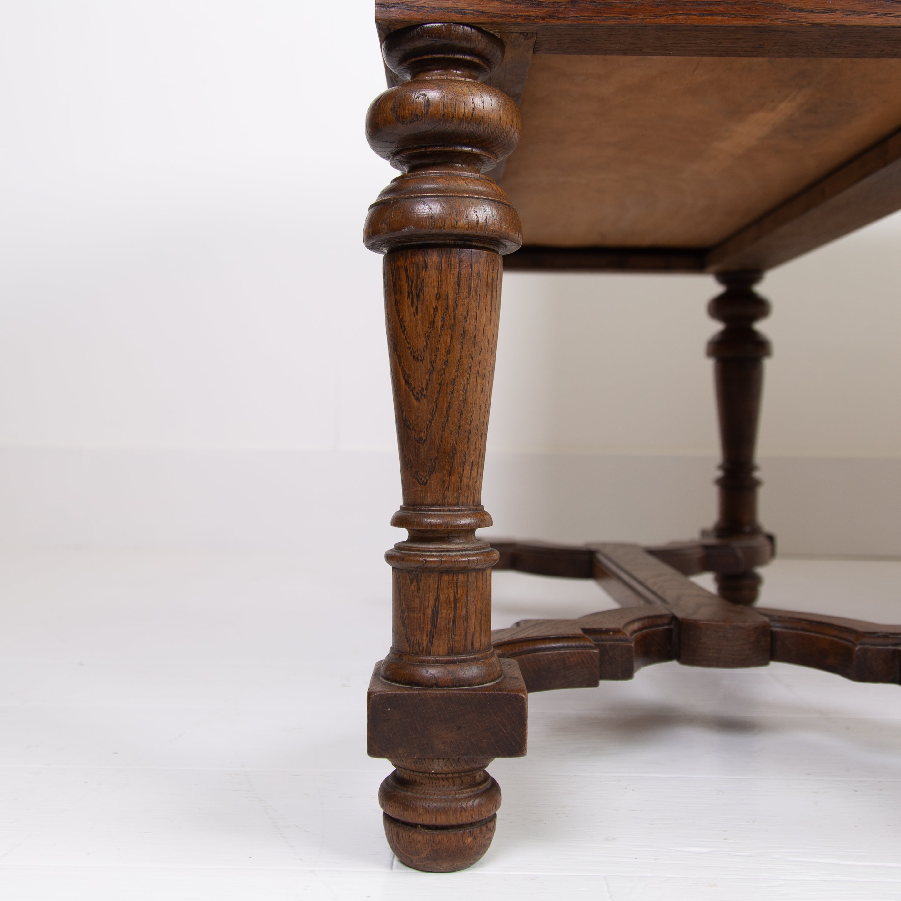 A super piece, we have a late Edwardian oak desk of superior quality and wonderfully decorative design including an unusual inserted oak tiled top. The desk sits well with well thought through design which is not only practical but highly pleasing to the eye.