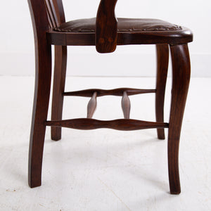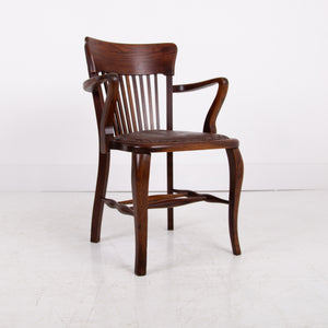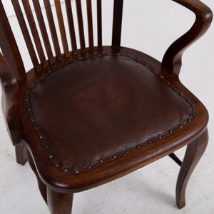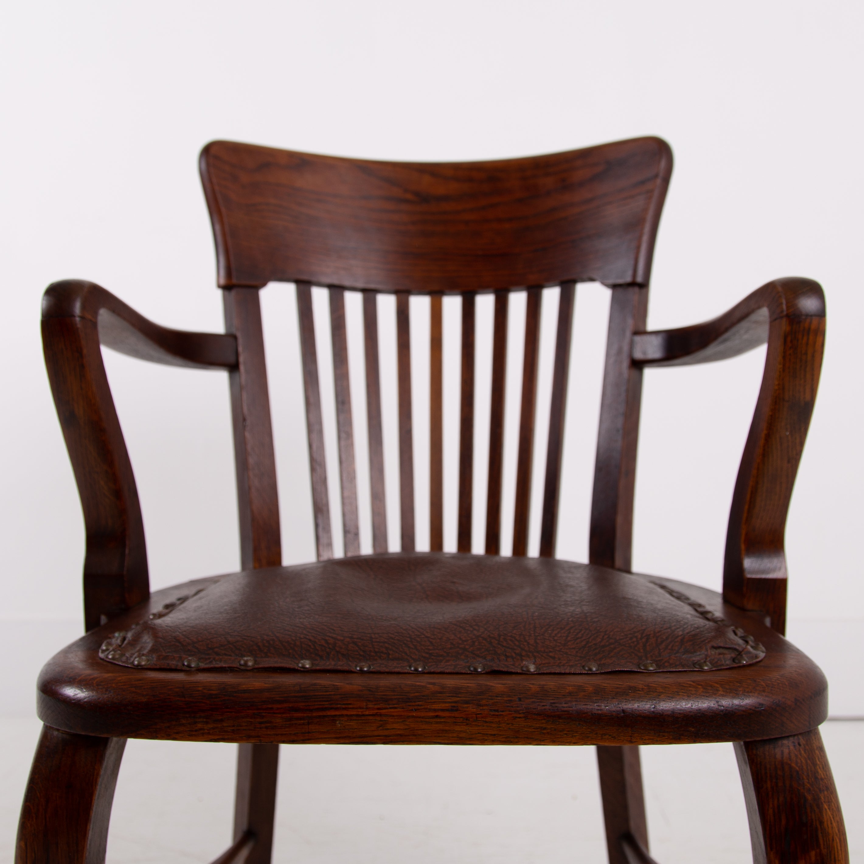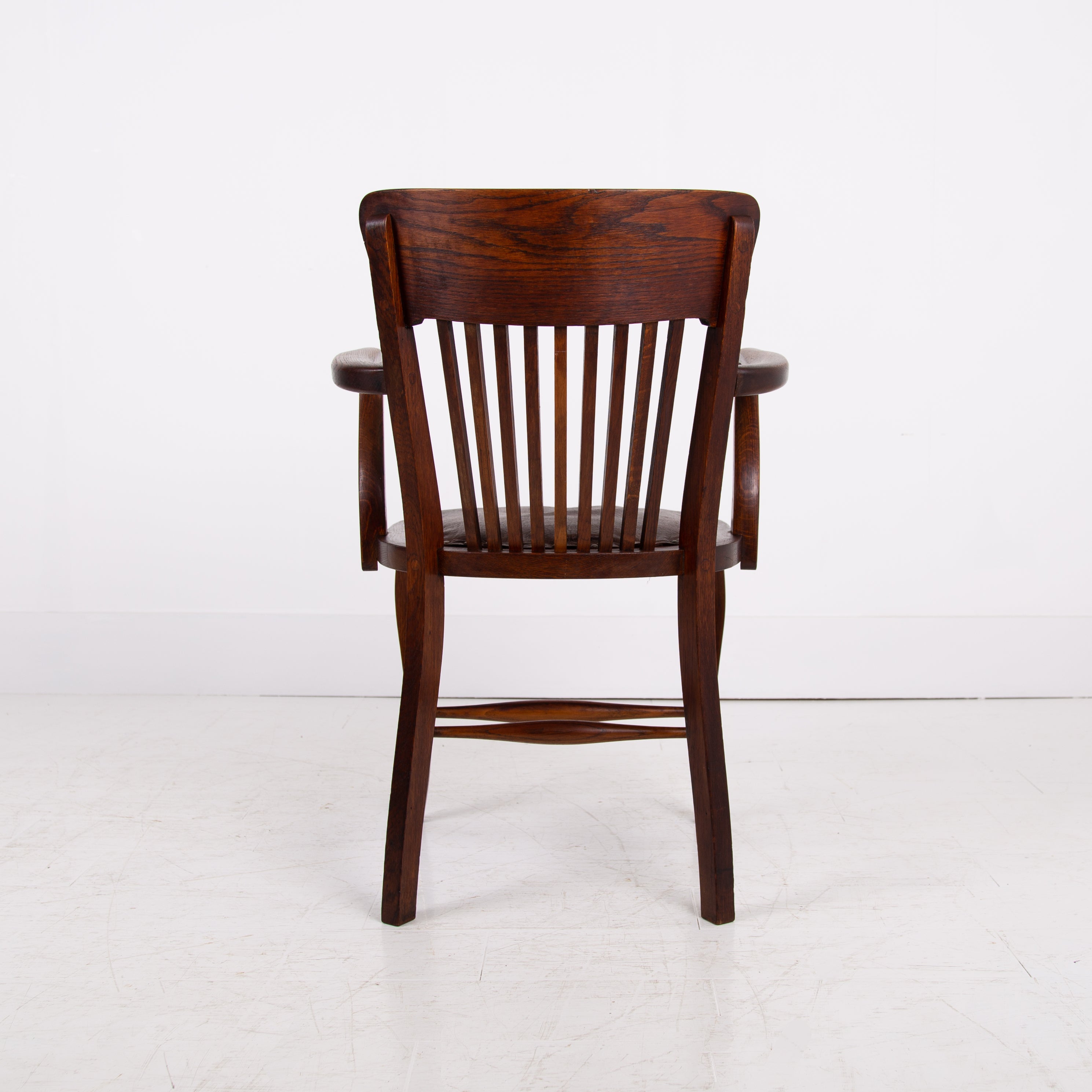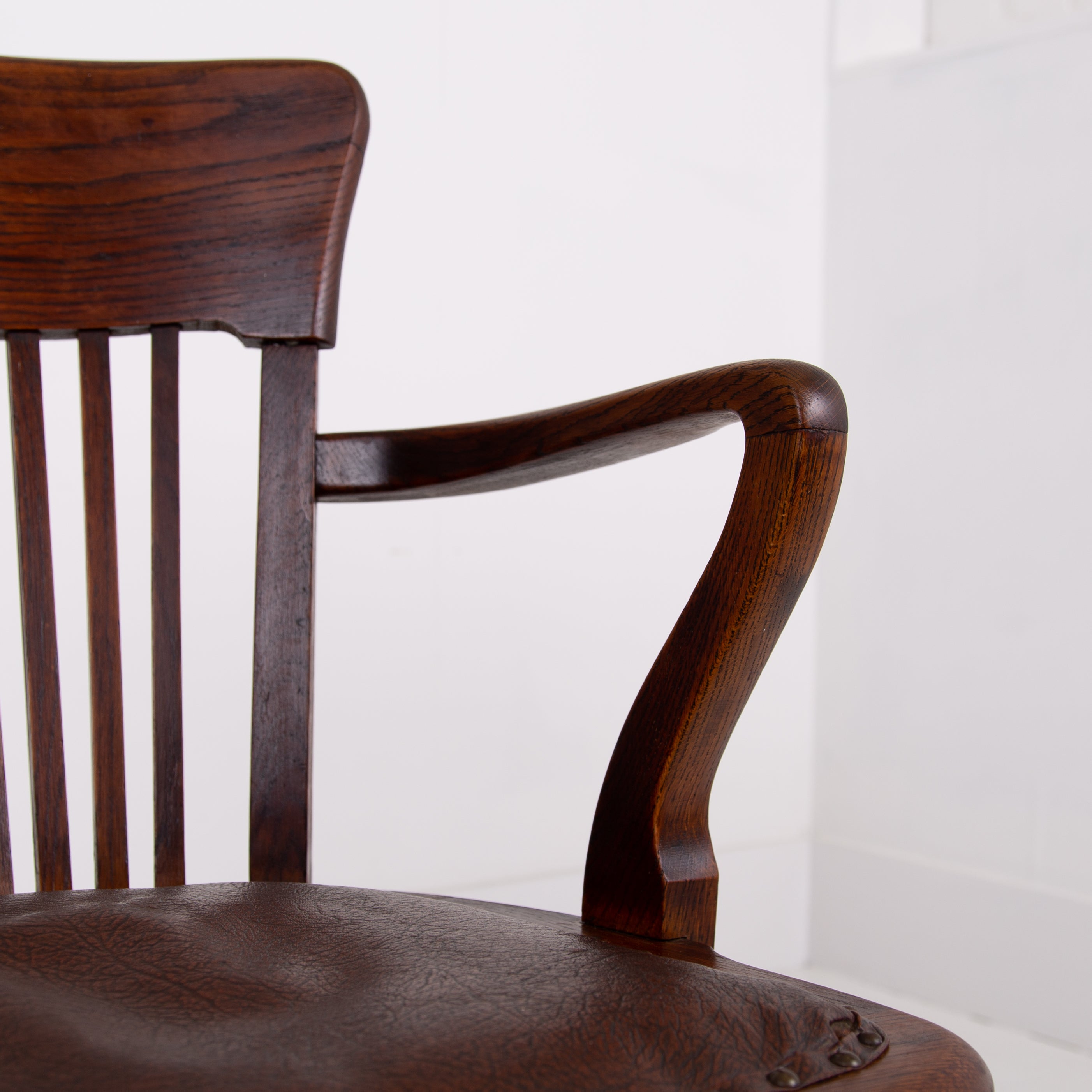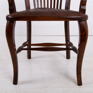 We have a good looking English oak desk chair C1910, very likely by Cookes of Finsbury - “Cooke’s of Finsbury was a London-based manufacturer established in 1885, renowned for high-quality Edwardian and Art Deco office furniture, particularly in English oak and walnut.”