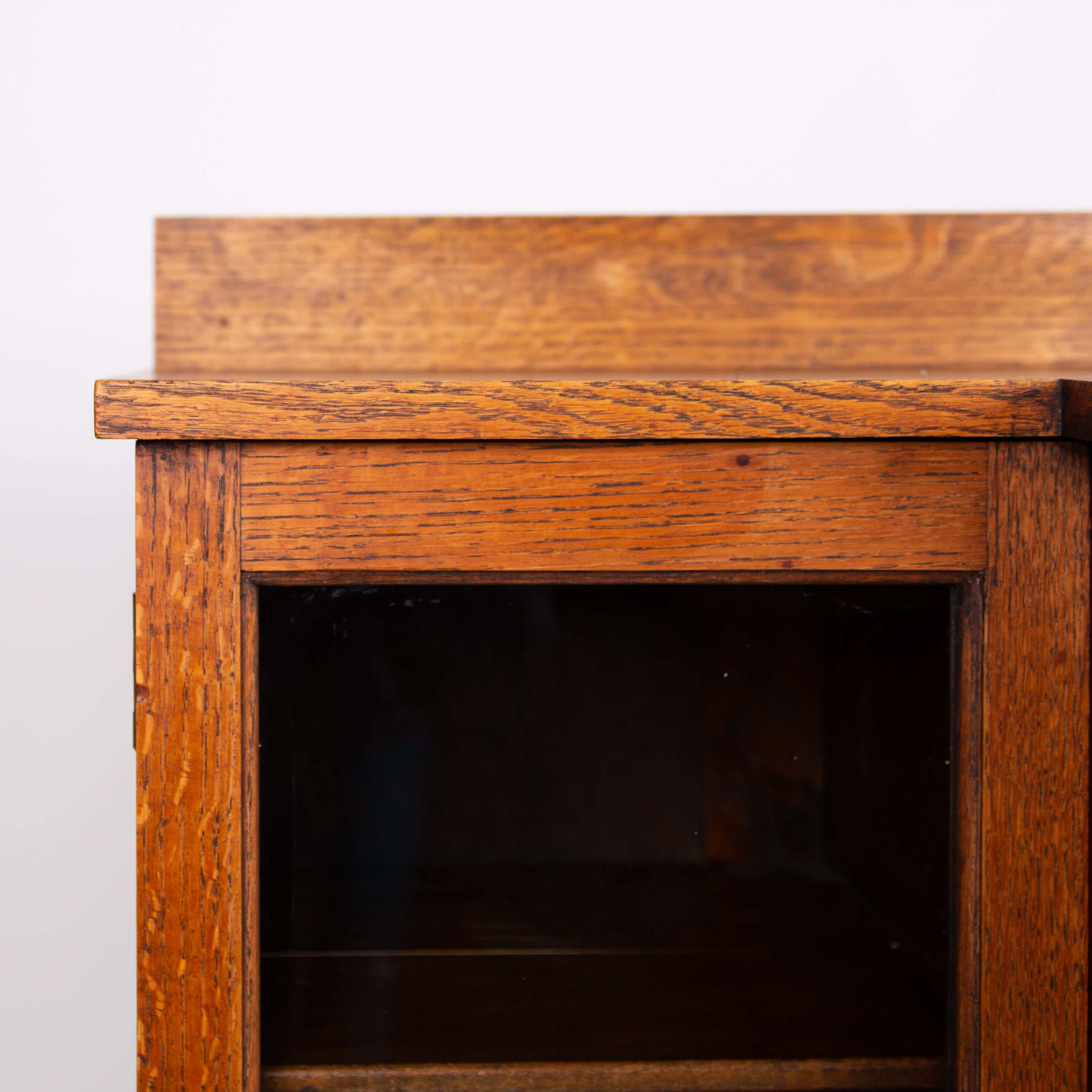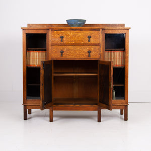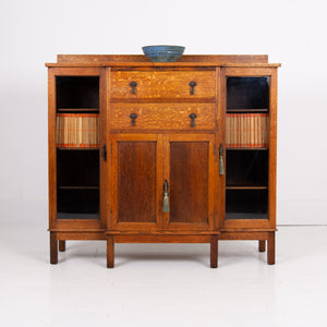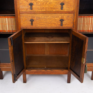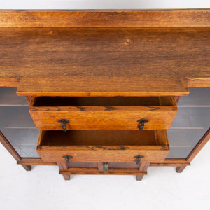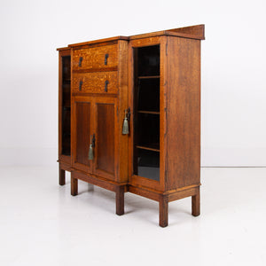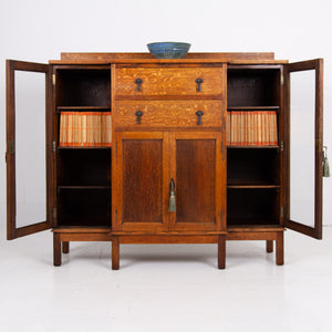 Lovely English Golden Oak Glazed Cabinet Bookcase C1920s