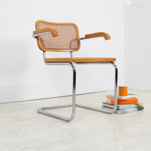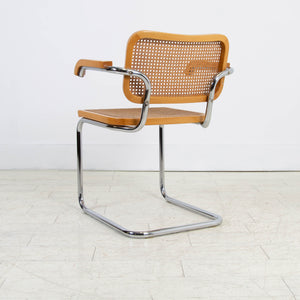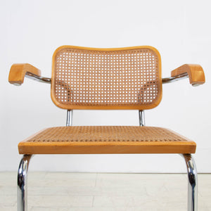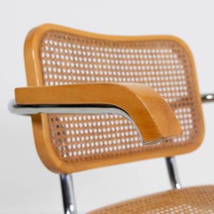 Marcel Breuer Style Cane and Chrome Armchair by Cidue C1970