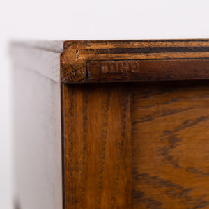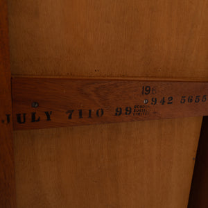 This one survives in super order. The drawers are running as they should (we have waxed the runners), it's sitting firm with no wobbles or repairs. A well looked after piece with a lovely grain and tone.