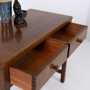 Mid Century Gordon Russell Oak 2 Drawer Desk Console Table