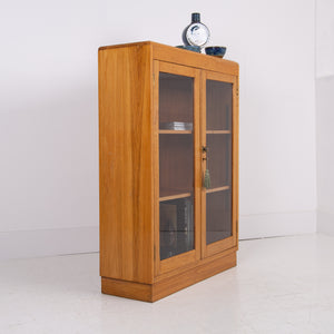 Mid Century Oak Glazed School Cabinet Bookcase