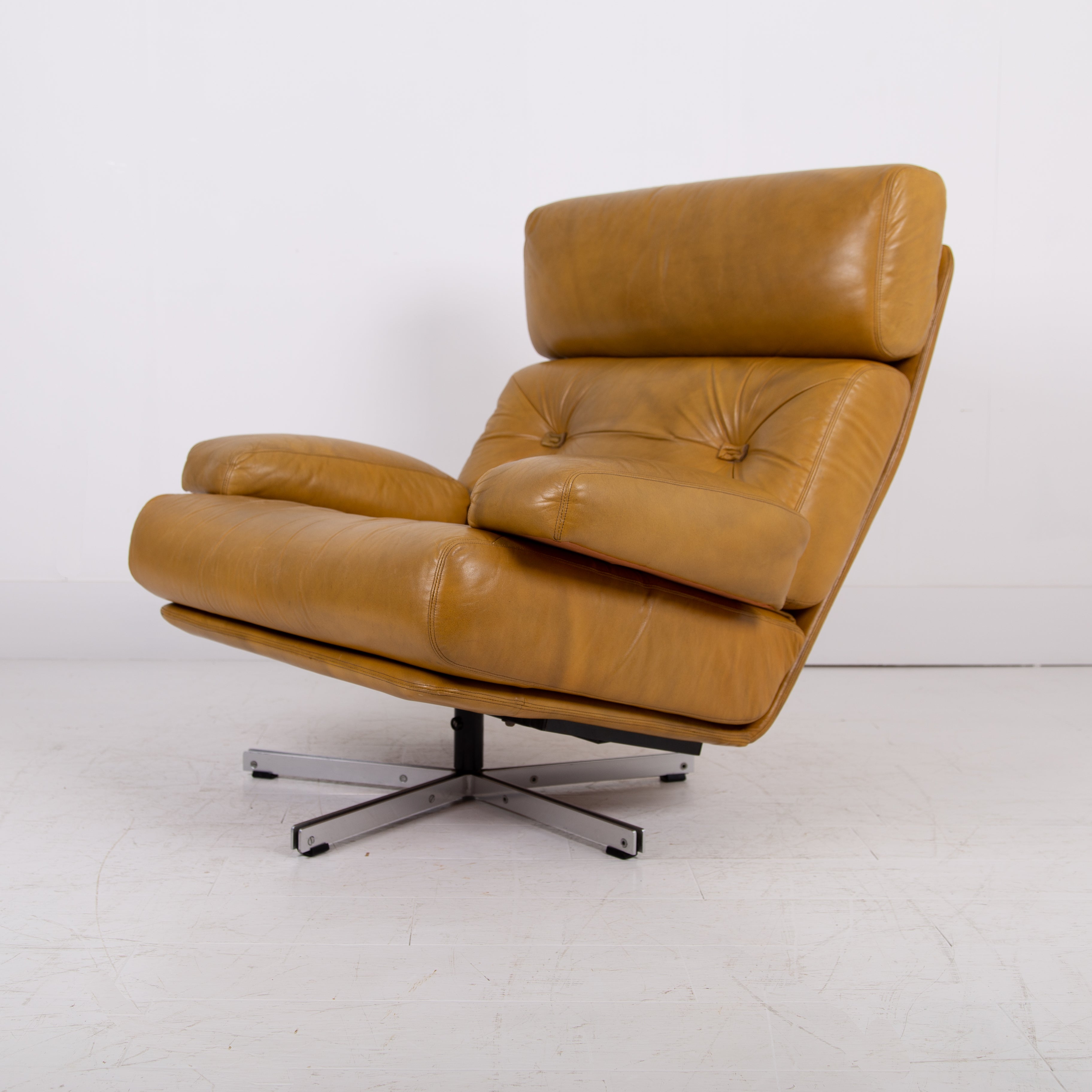 Mid Century Swivel Leather Armchair Tetrad Nucleus C1970