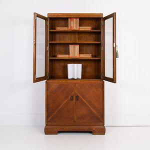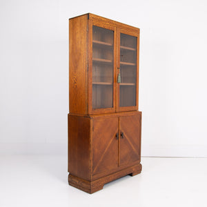 Handsome Oak Art Deco Glazed Bookcase Cabinet C1930
