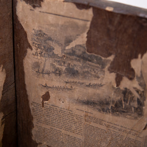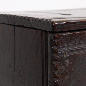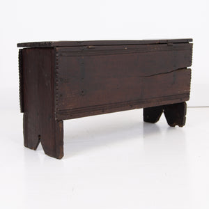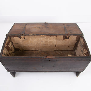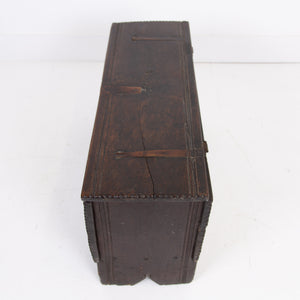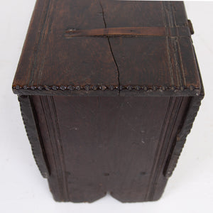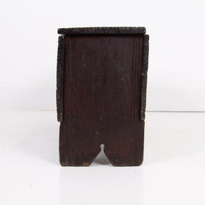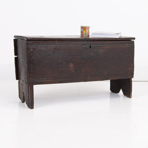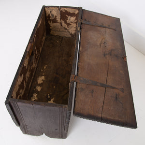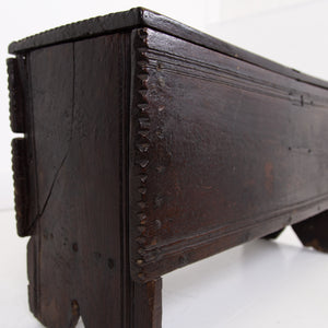 We love this one, faults and all! It is perched on super angled legs and is of plank construction, relatively humble in style with a little chip carving. Plenty of aging but perfectly “handsome”, just awaiting its new home.