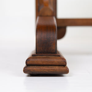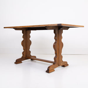 Until recently this one was used as a working desk overlooking a lovely view… We have a very attractive looking piece from around the 1930s in English oak with a well sized top and well shaped base sitting on ogee style feet. As a table it would seat 6 comfortably and as a desk gives you plenty of space.