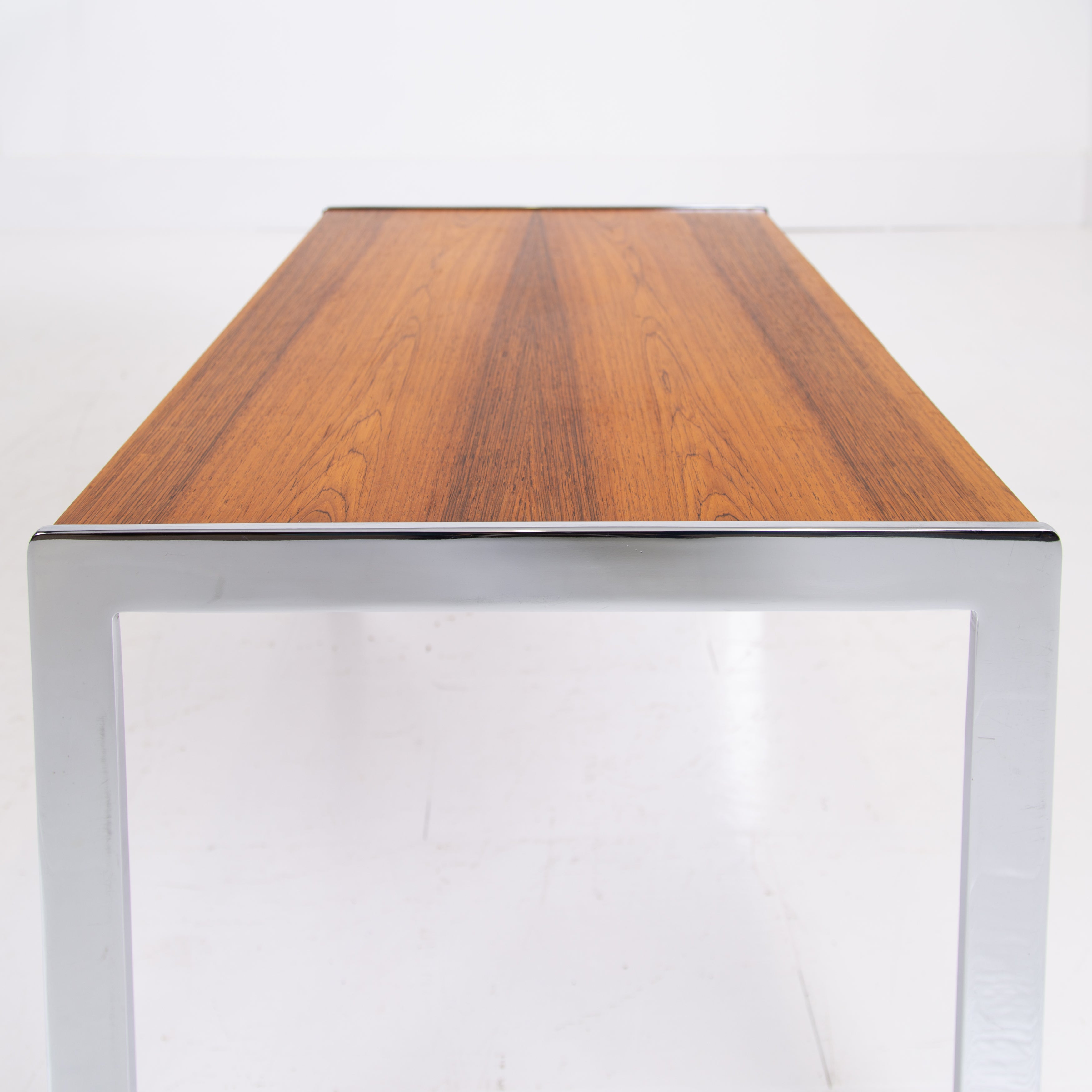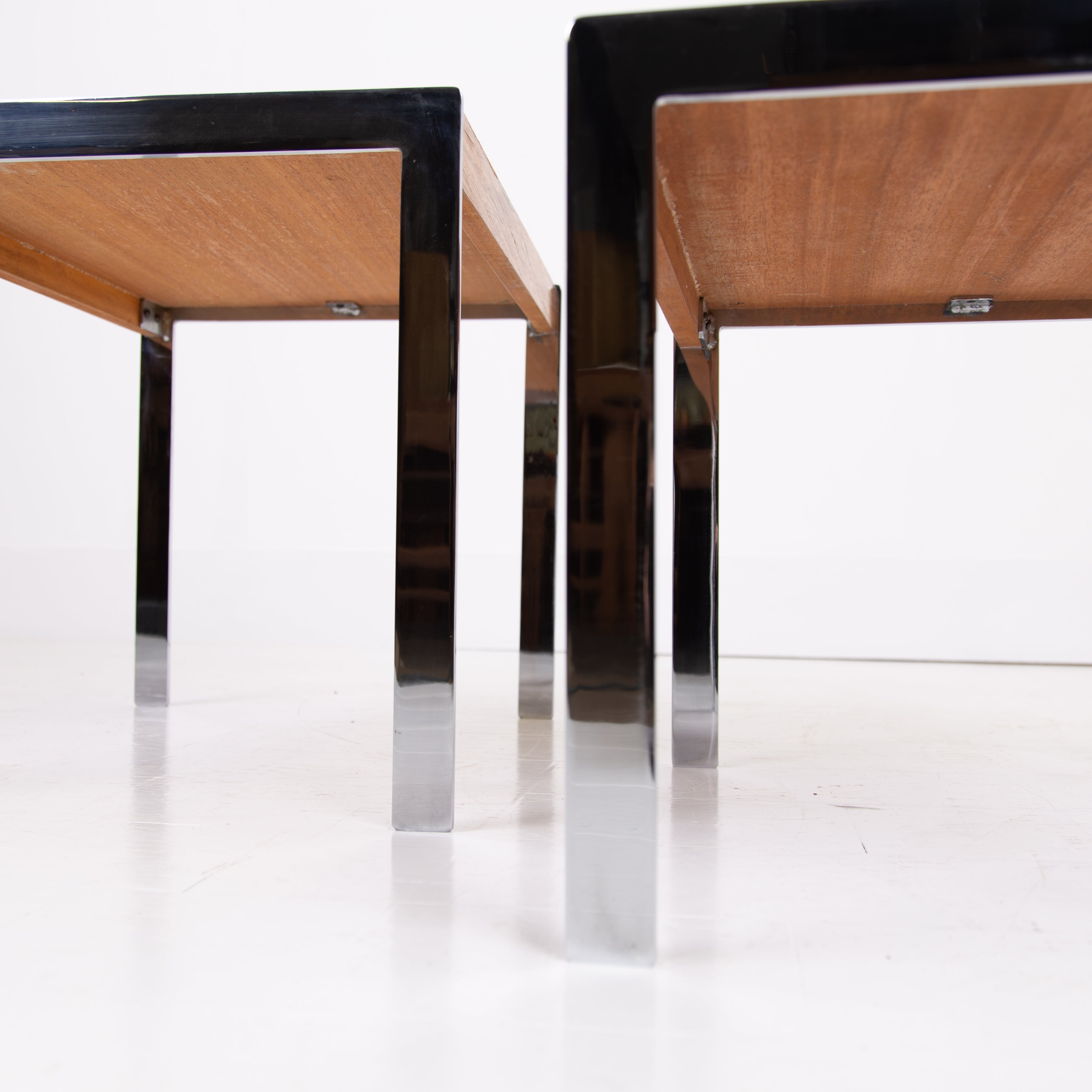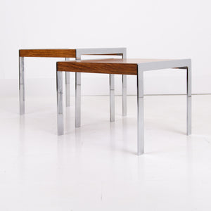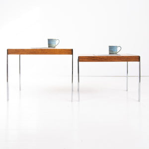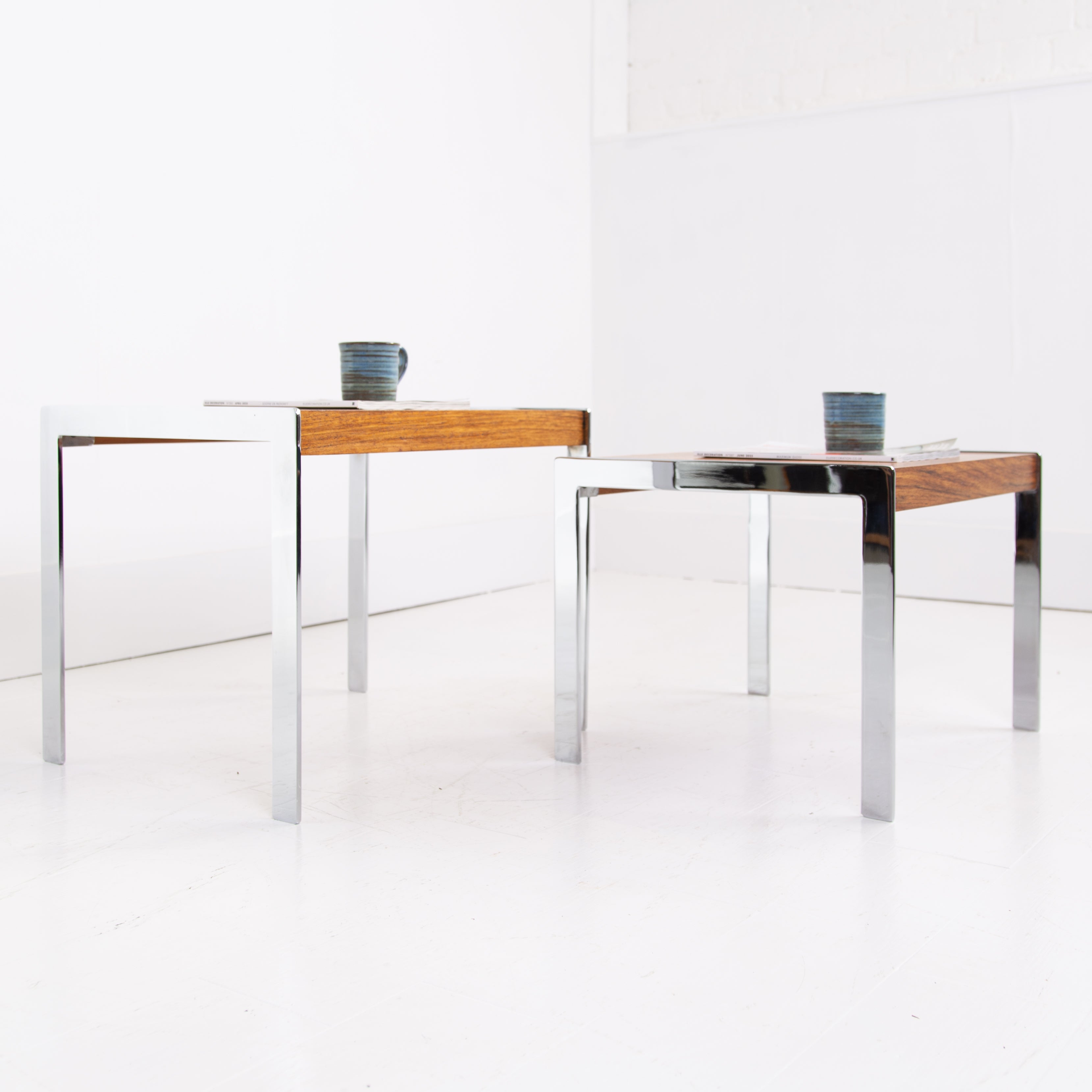 Pair of Merrow Associates Rosewood and Polished Steel Coffee Tables